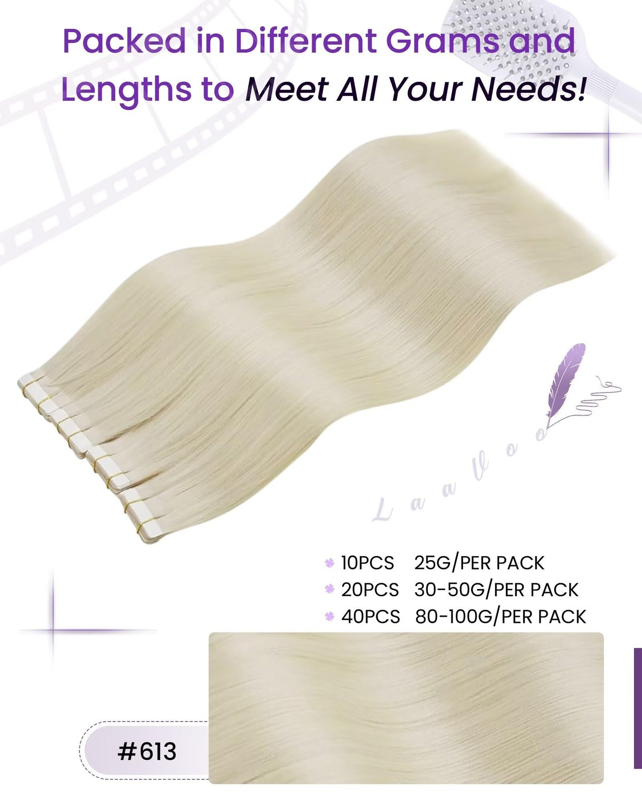 LaaVoo Human Hair Tape in Extensions Blonde Invisible Real Natural Seamless