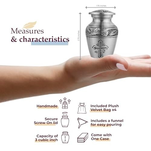 • Small Cremation Urns for Ashes - Set of 4 Mini Keepsake Urns, Religious Cross De