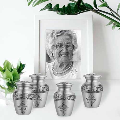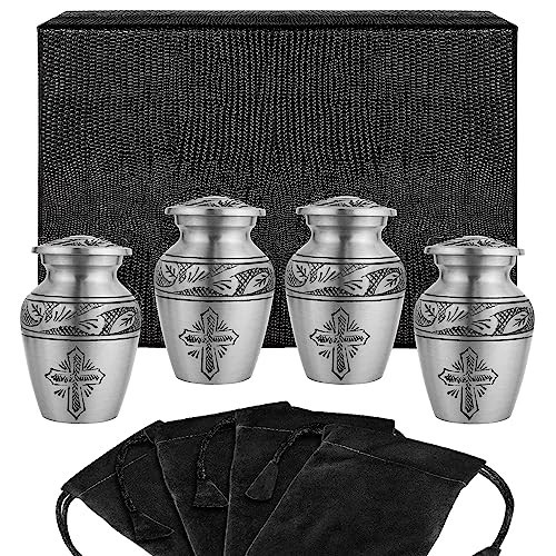 Small Cremation Urns for Ashes - Set of 4 Mini Keepsake Urns, Religious Cross De