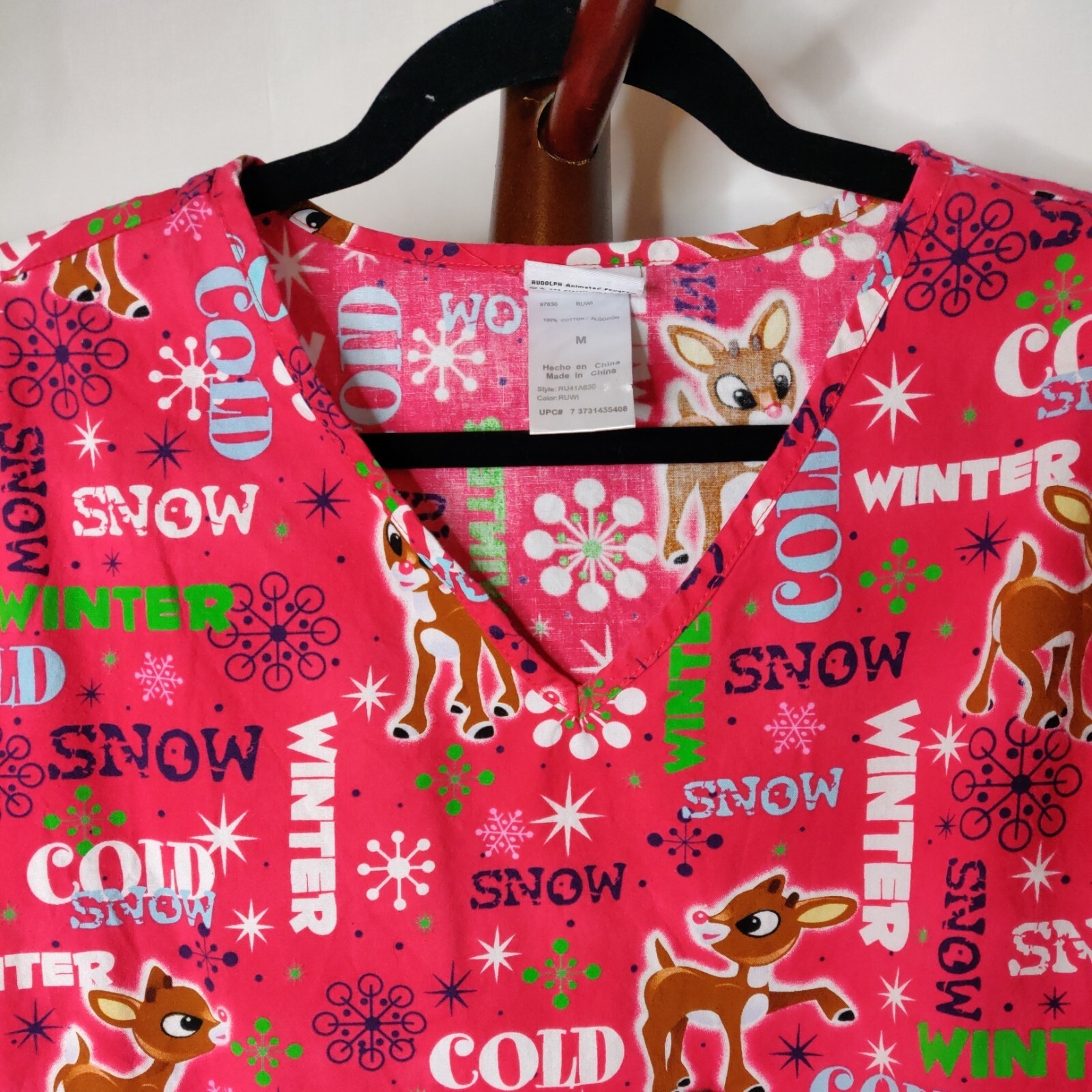 Rudolph Red-Nosed Reindeer women's size M scrub top v-neck short sleeve 3 pocket
