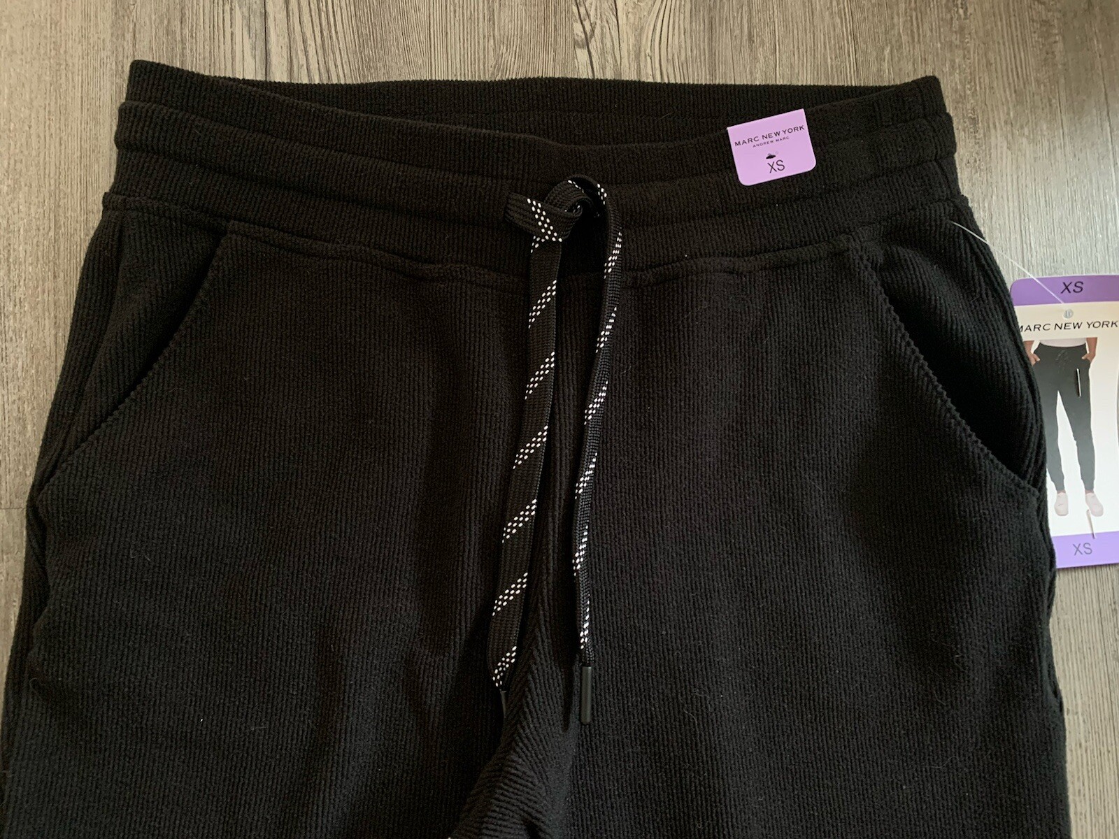 как выглядит XS Womens Marc New York Black Ribbed Soft Slim Jogger Pants NEW фото