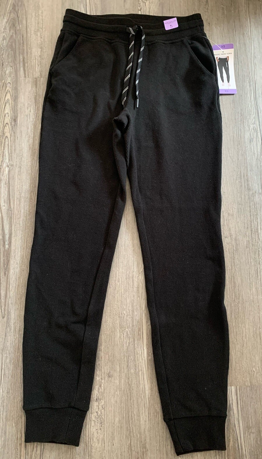 XS Women's Marc New York Black Ribbed Soft Slim Jogger Pants NEW