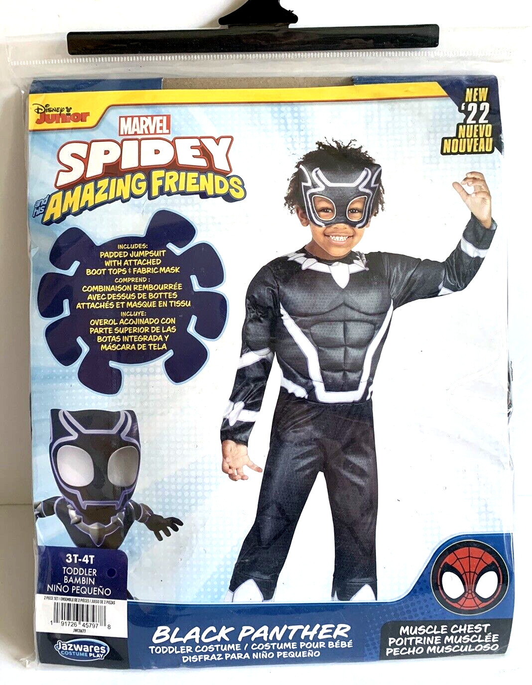 Jazwares Disney Junior Marvel Spidey Friend NEW Black Panther Costume Size 3T-4T