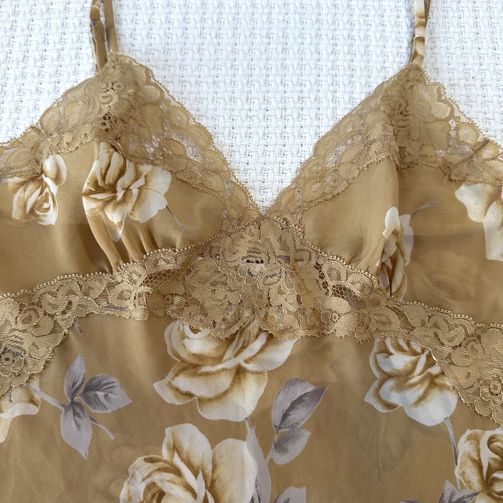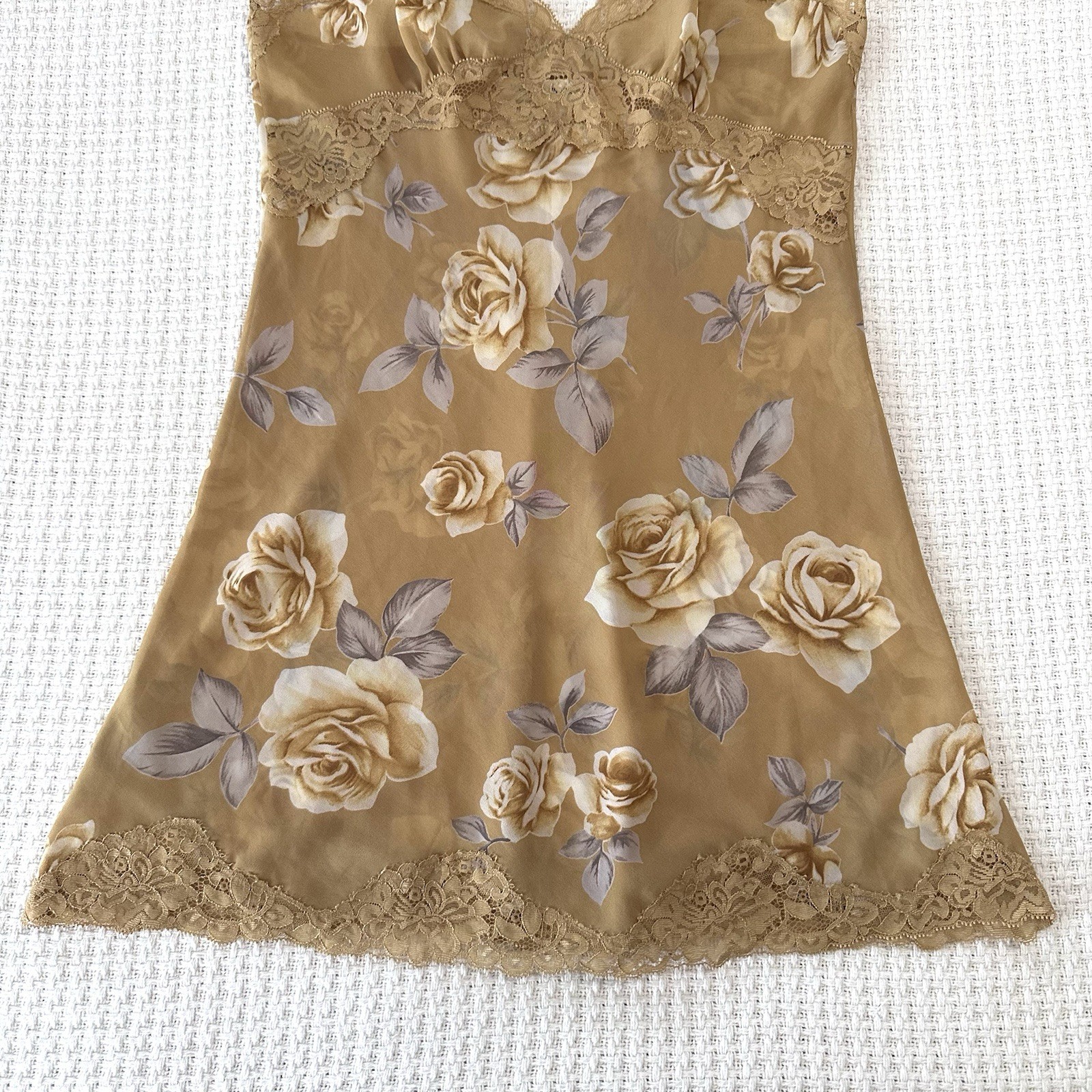 Victoria's Secret Vintage Gold Rose Lace Trim Slip Dress Chemise Womens XS