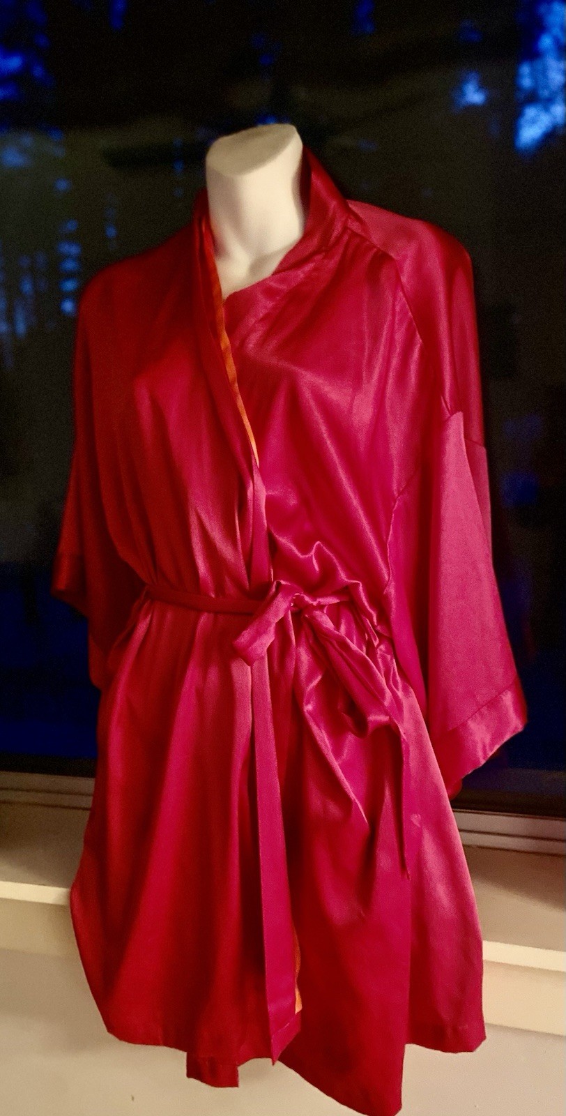 как выглядит Victoria s Secret Satin Robe Kimono Hot Pink Size S фото