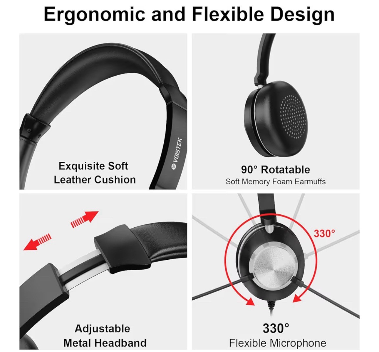Voistek USB Headphones W/Microphone Laptop Wired Headphones Computer Headset