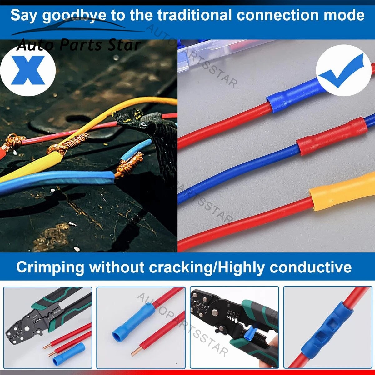 100X 12-10 Gauge Fully Insulated Terminals Copper Butt Connectors Set Yellow New