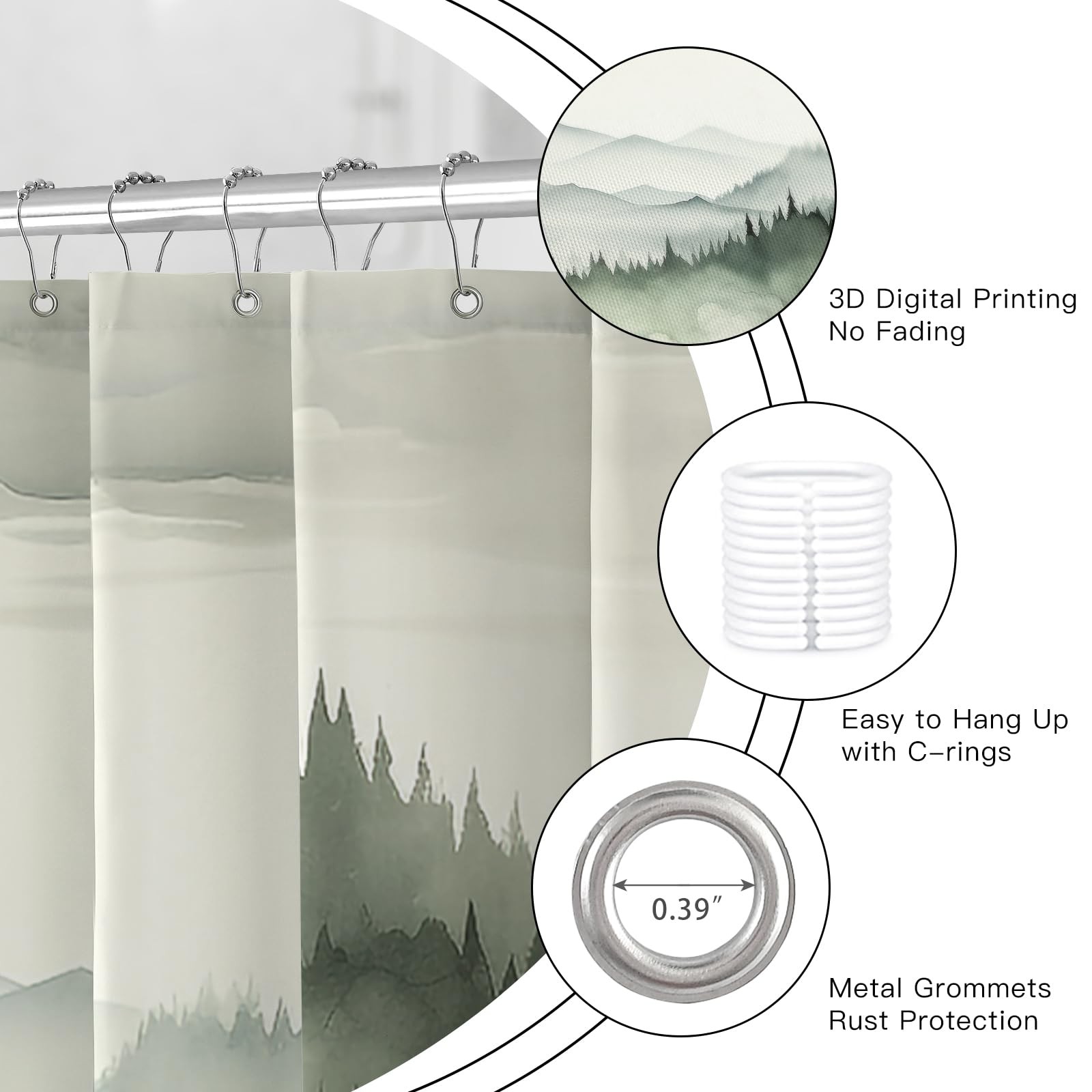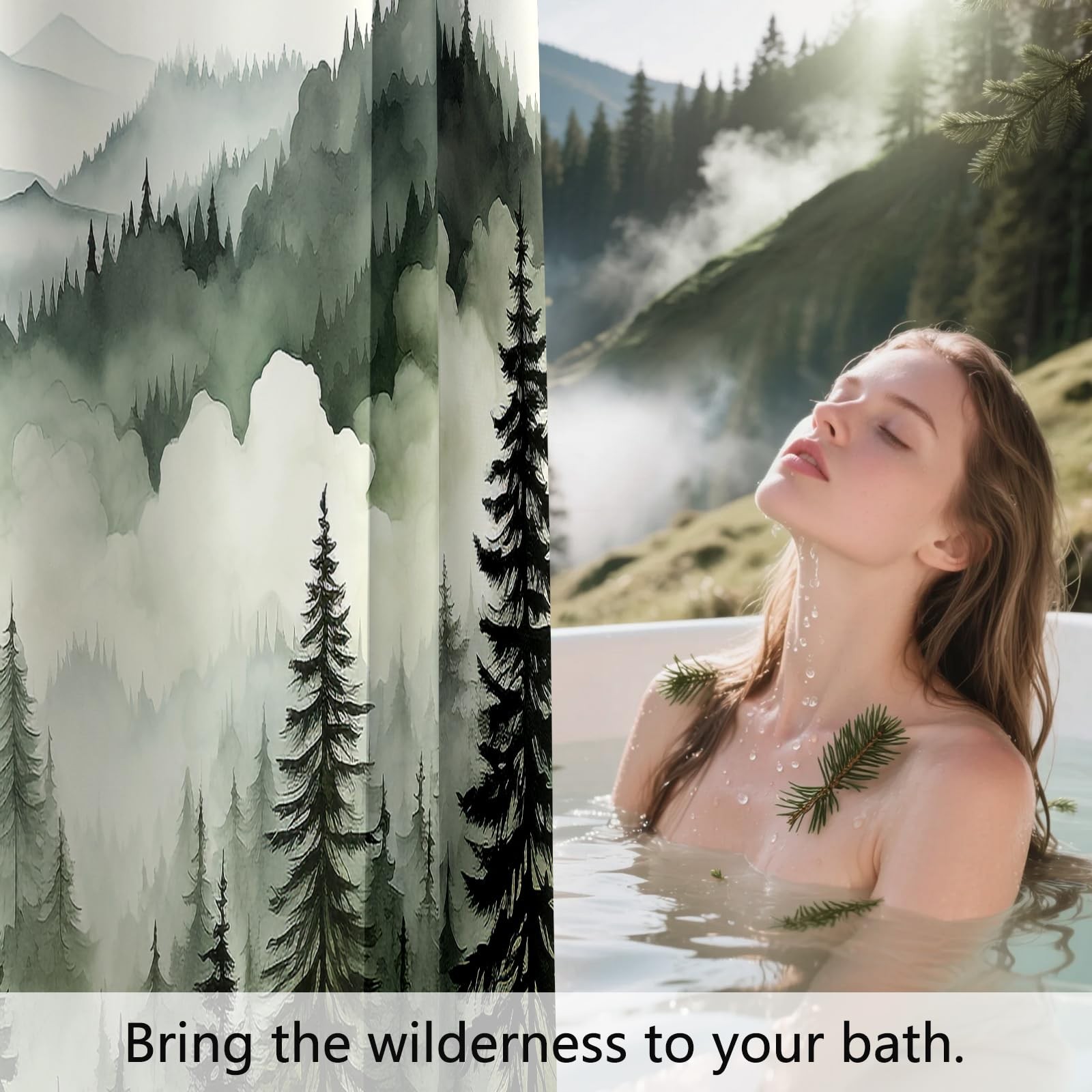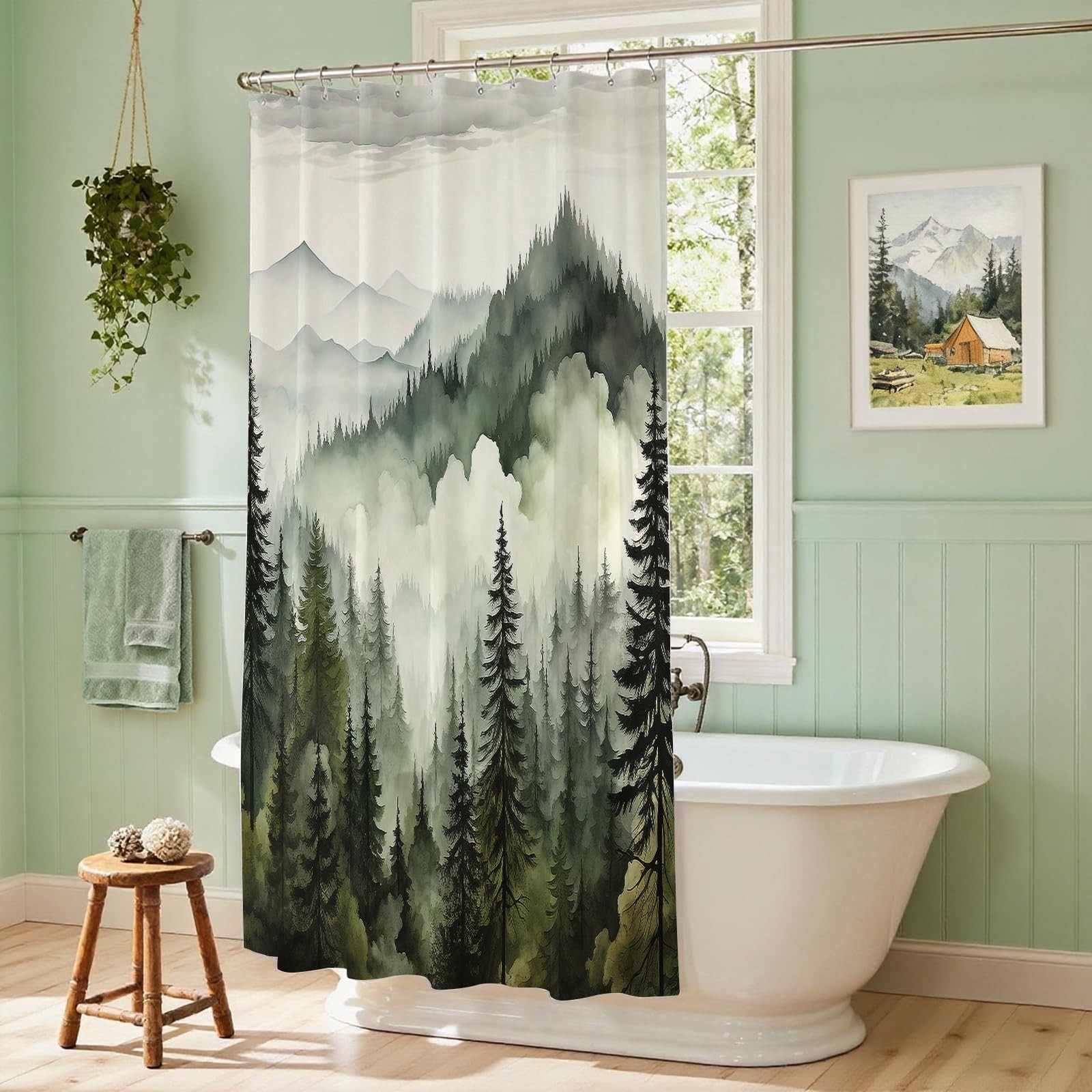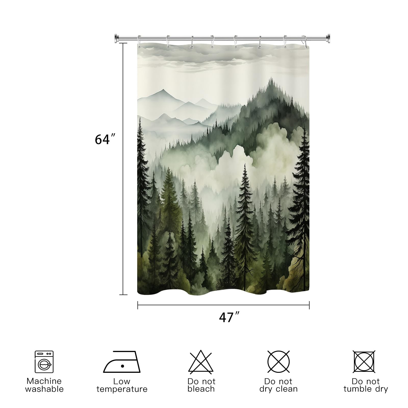 RV Forest Shower Curtain 47 x 64 Inch, Small Stall Mountain Camper Shower Cur...