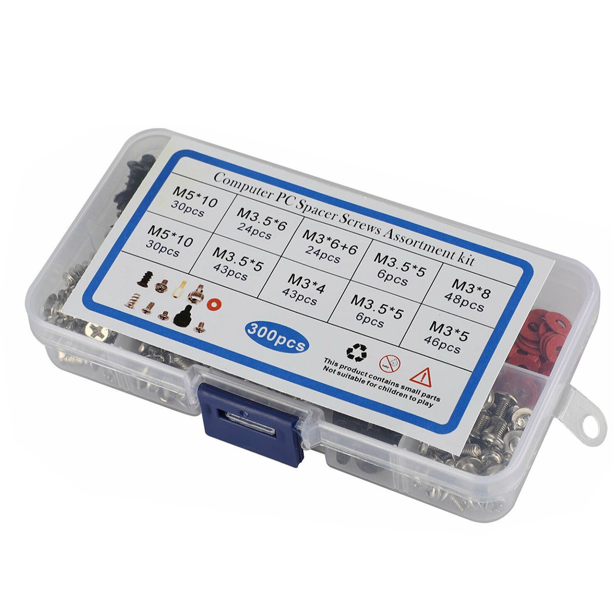 300pcs/Box Computer Screws Standoffs Kit for PC Hard Drive Motherboard Case Fan