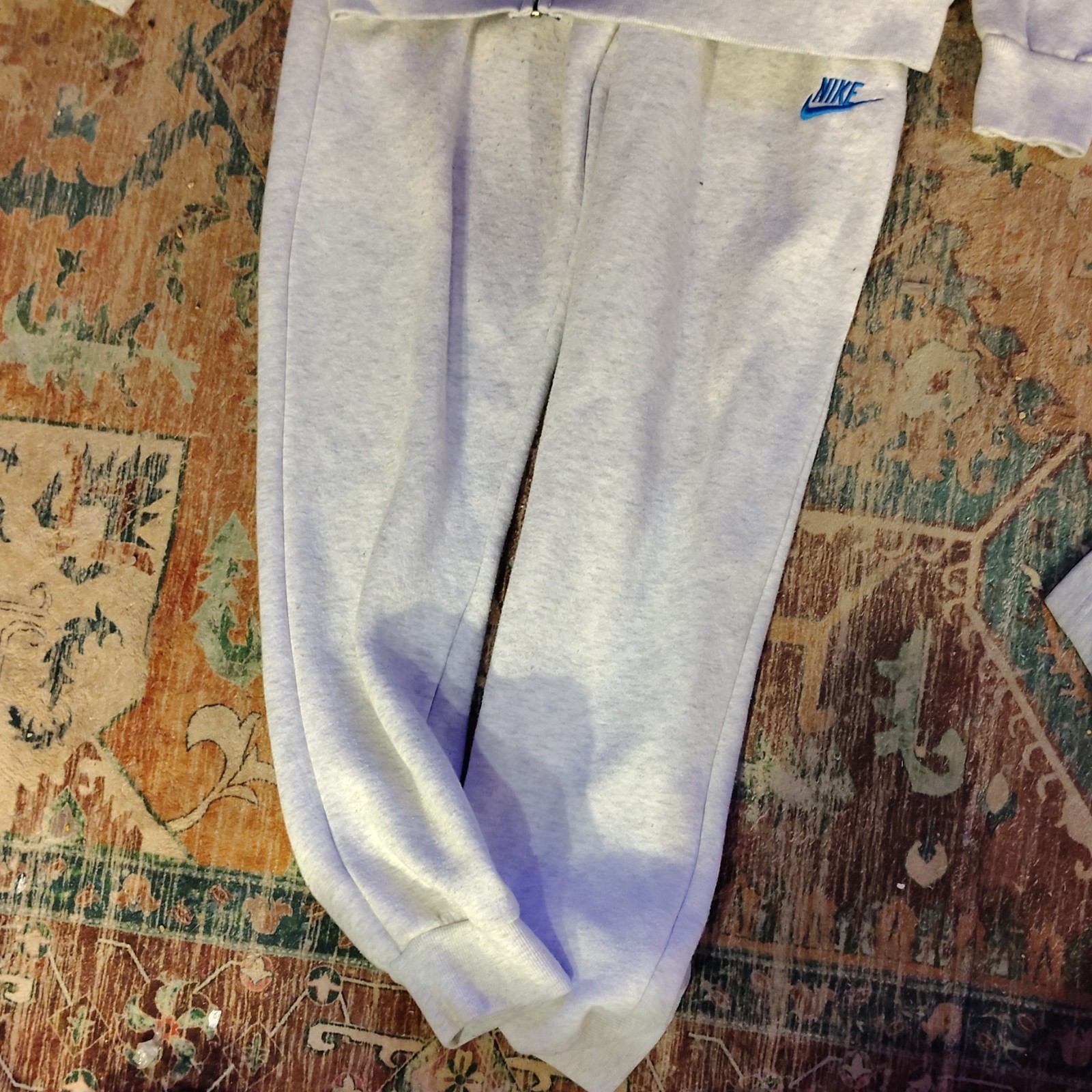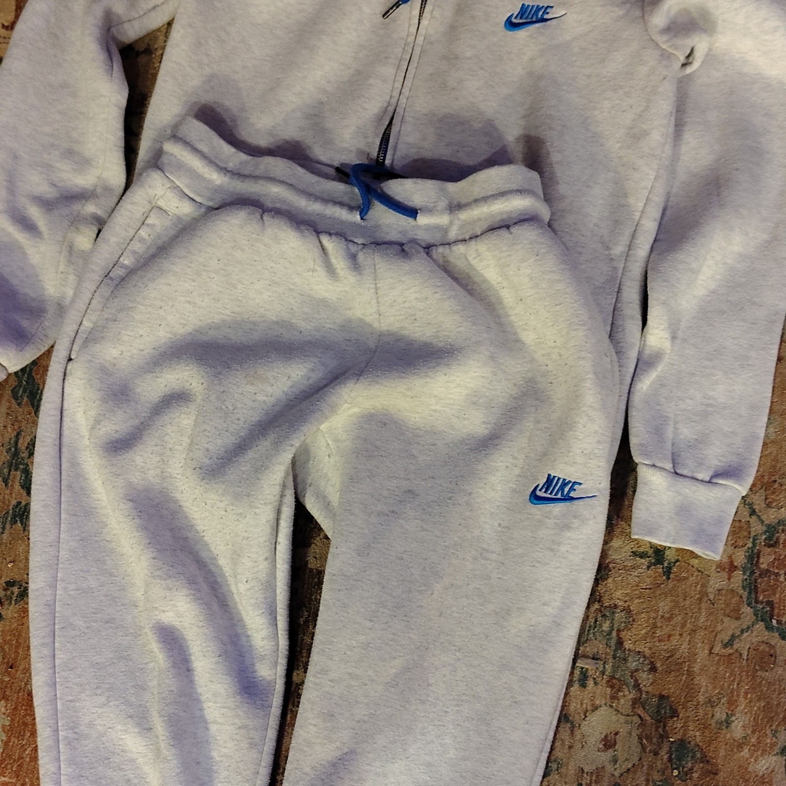как выглядит Nike Womens Gray Blue Fleece Tracksuit Set L Hooded Zip Jacket Pants фото