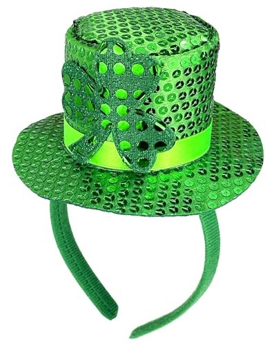 • St. Patrick's Day Green Mini Top Hat Headband Irish Sequin Shamrock Leprechaun