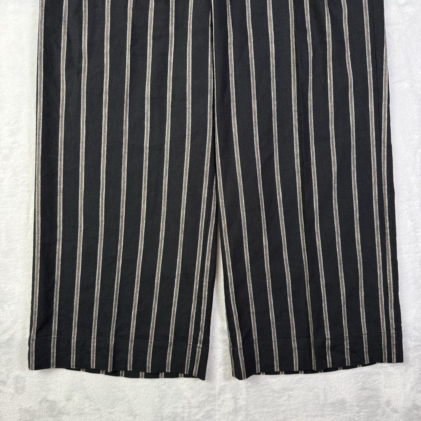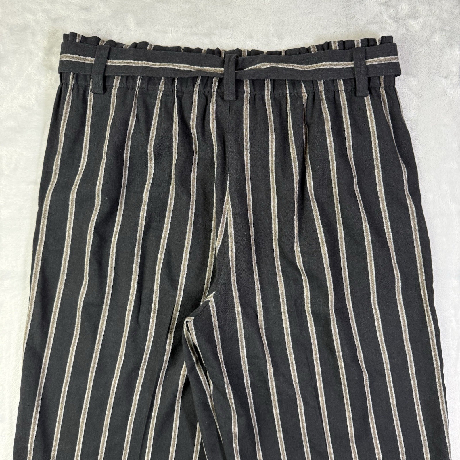 как выглядит J Jill Linen Stretch Wide Leg Pants Size Medium Black Waist Tie Boho Loose Fit фото