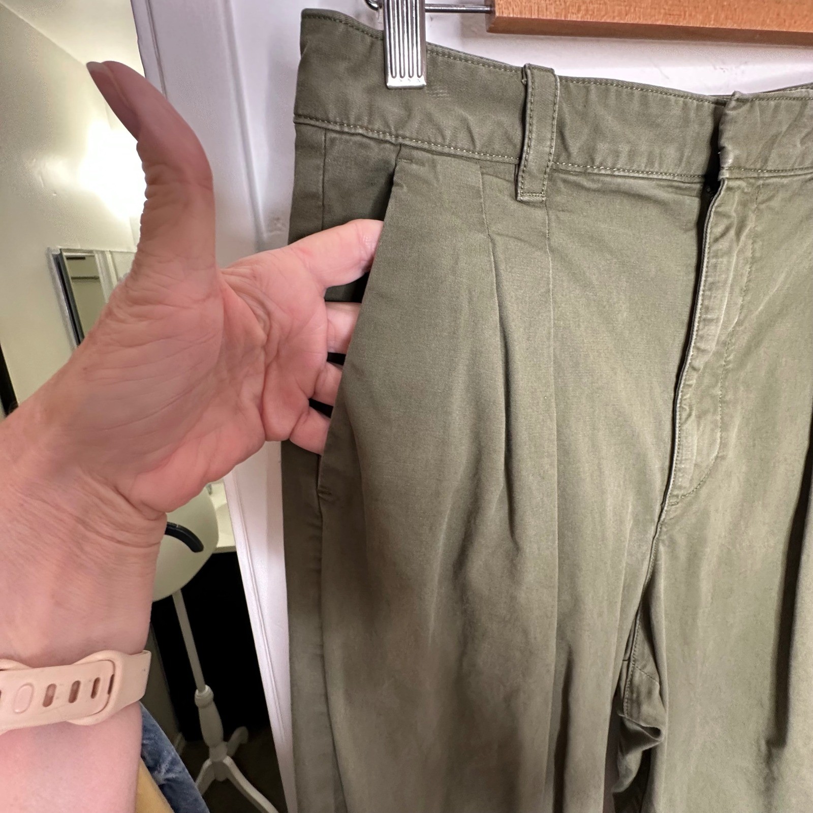как выглядит GAP Pleated Wide Khaki Pants Green Linen Cotton Blend Wide Leg Size 10 Earthy фото