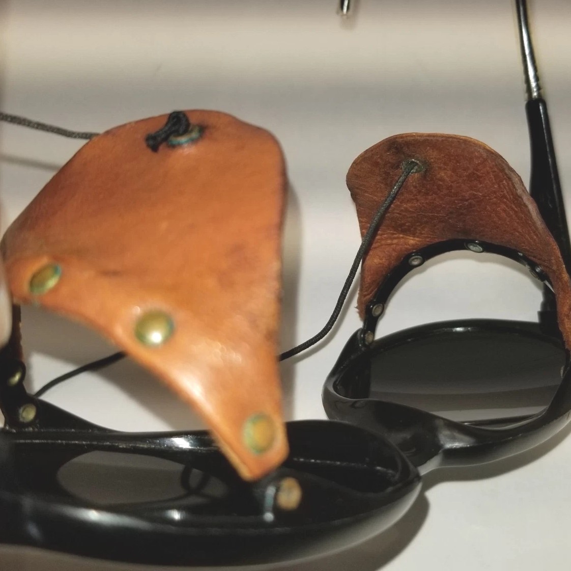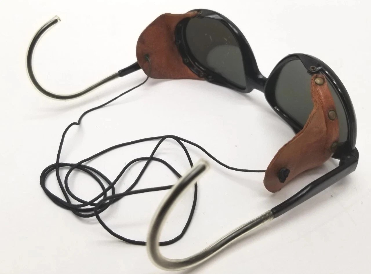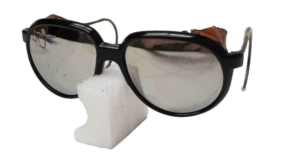 Vtg 1970s Style Eyes Nylon France Mirrored Lenses Ski Sunglasses Leather Sides