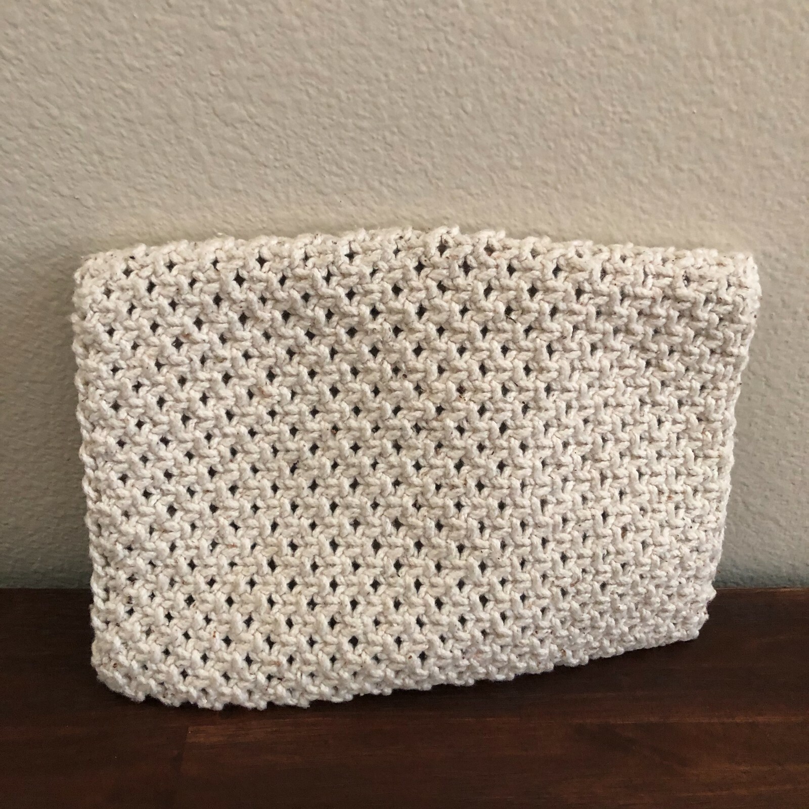 как выглядит Vintage Clutch Small Crochet Handbag Purse Beaded Ivory фото