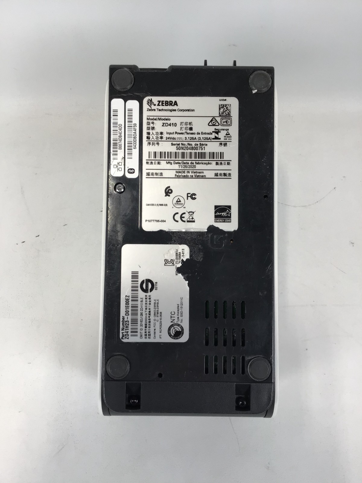Zebra ZD410 Direct Thermal Barcode Label Printer White ZD41H23-D01E00EZ