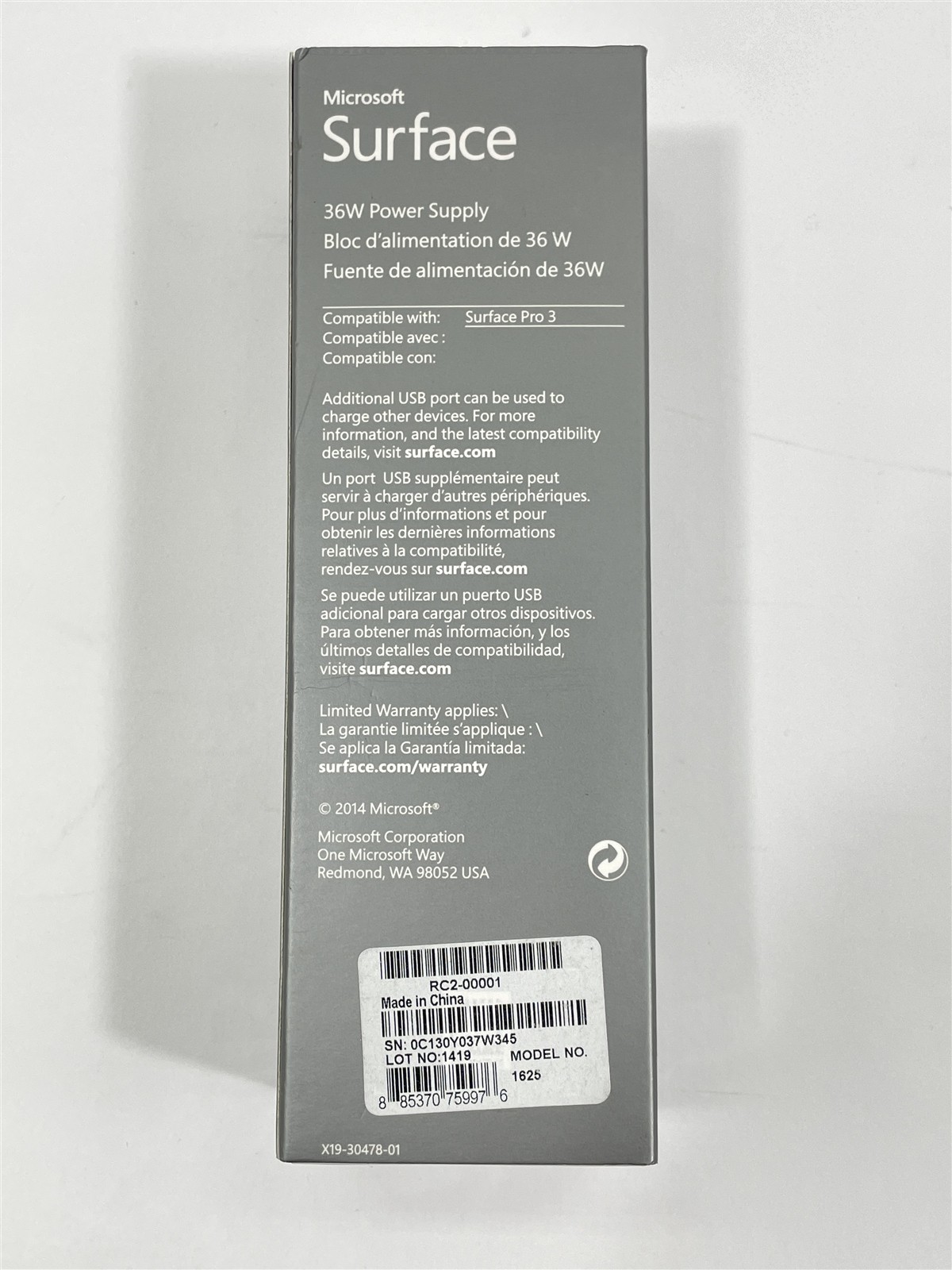 NEW Genuine Microsoft Surface 36W Power Supply Charger Model 1625