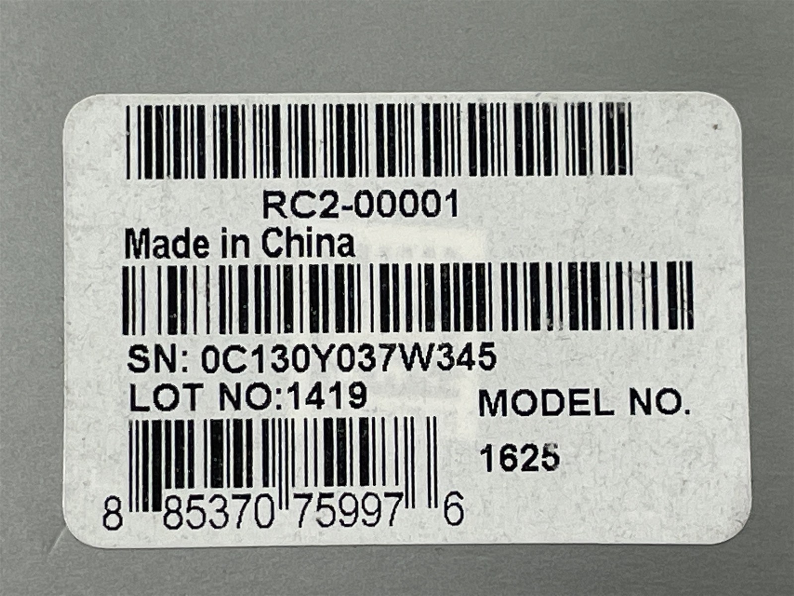 MPN: 1625, RC2-00001