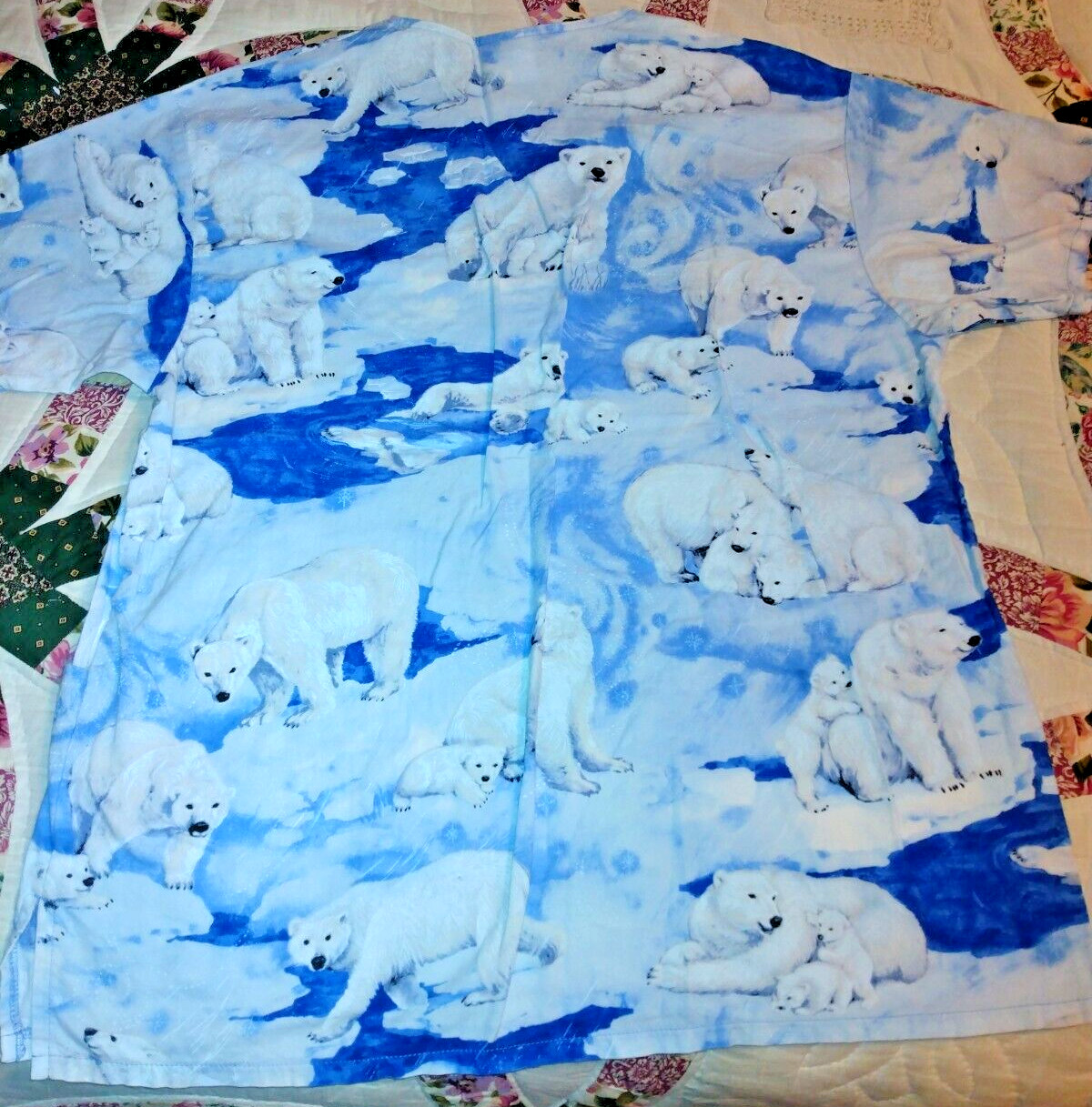 как выглядит SCRUBS TOP SHIRT PEACHES POLAR BEARS SZ M 3 POCKETS FRONT MEDICAL DENTAL фото