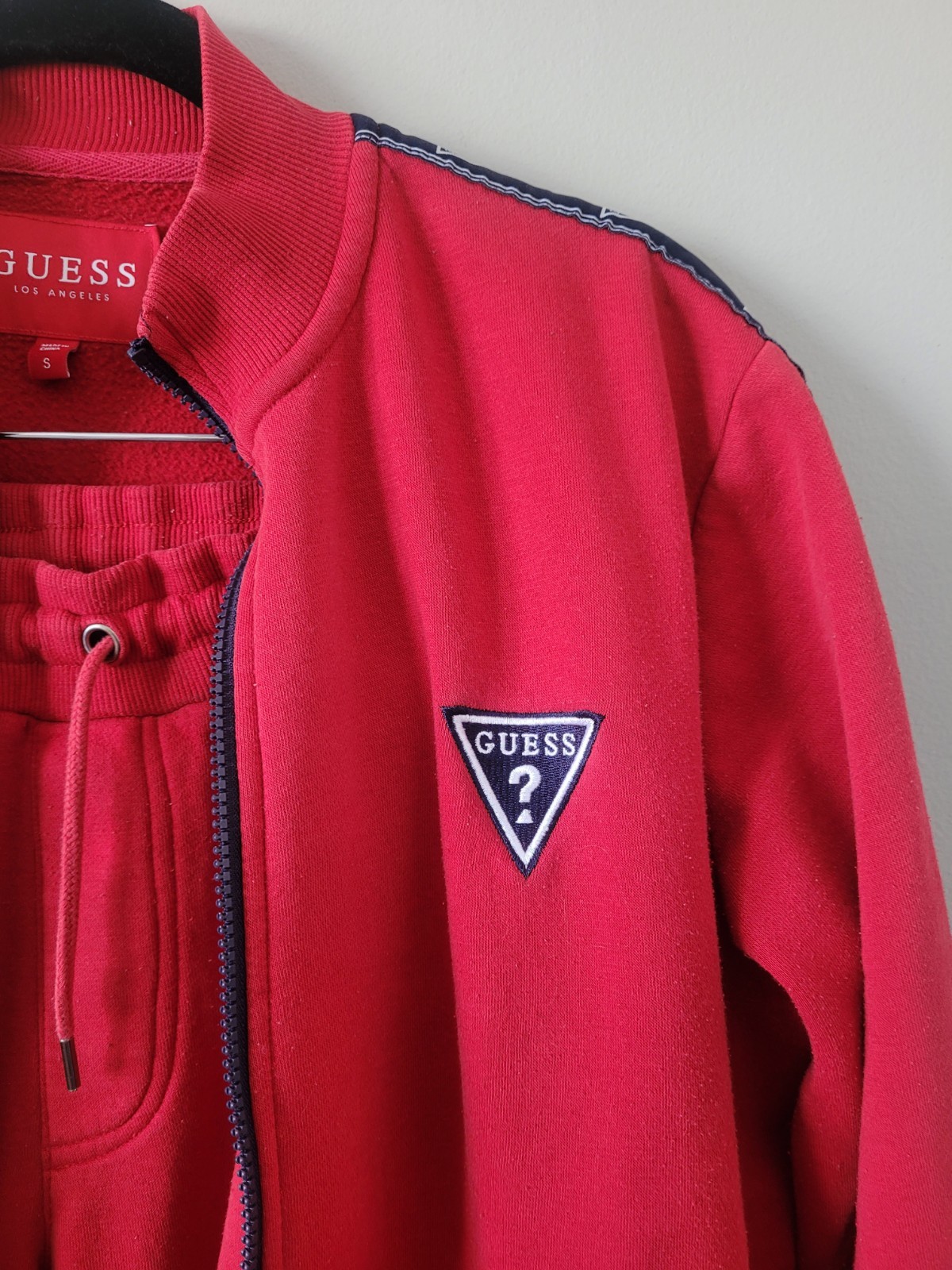 GUESS Men's Red/Navy Logo Jogger Tracksuit Set Size S Jacket Pants