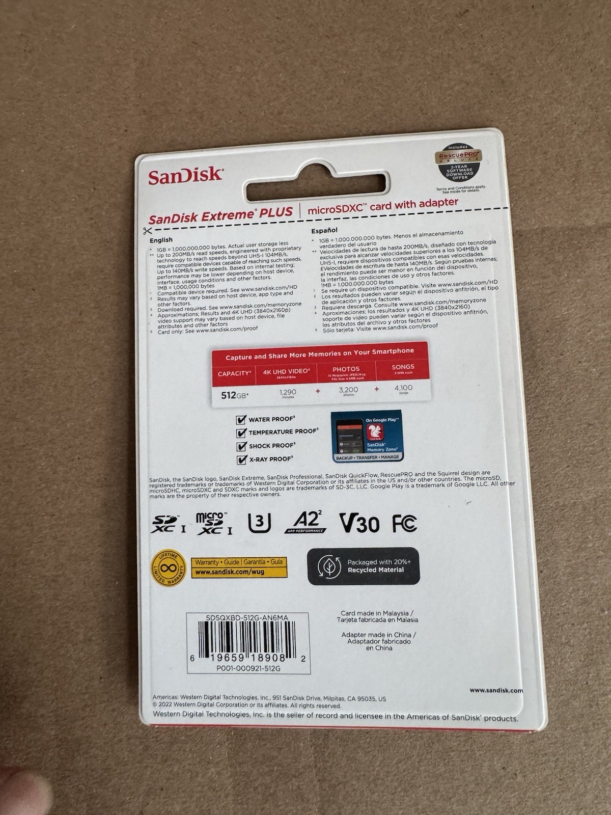 как выглядит SanDisk Extreme PLUS 512GB microSDXC UHS-I Memory Card Authentic. New фото