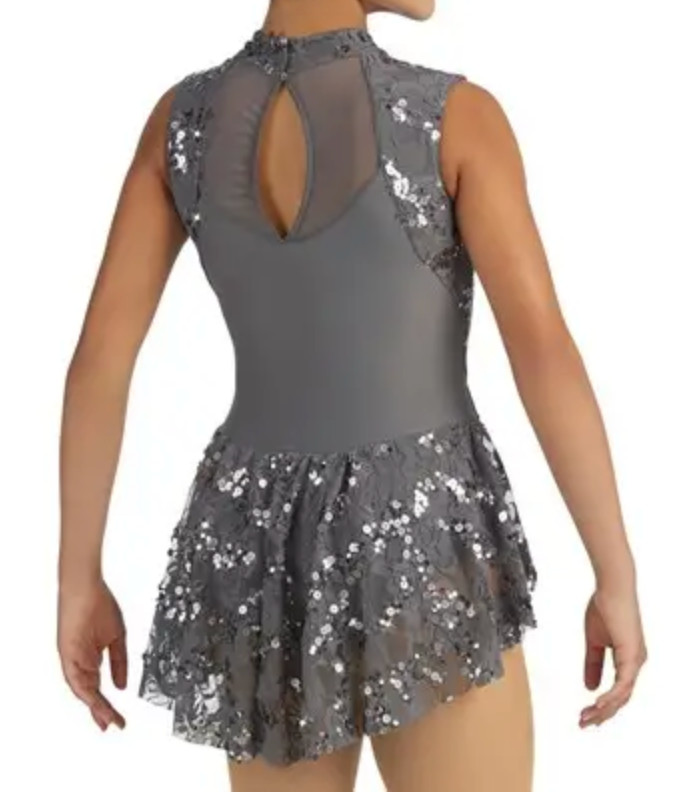 как выглядит New WEISSMAN Rumour Has It 11350 GRAY Mock Neck Sequin Bustle LEOTARD SA S ADULT фото