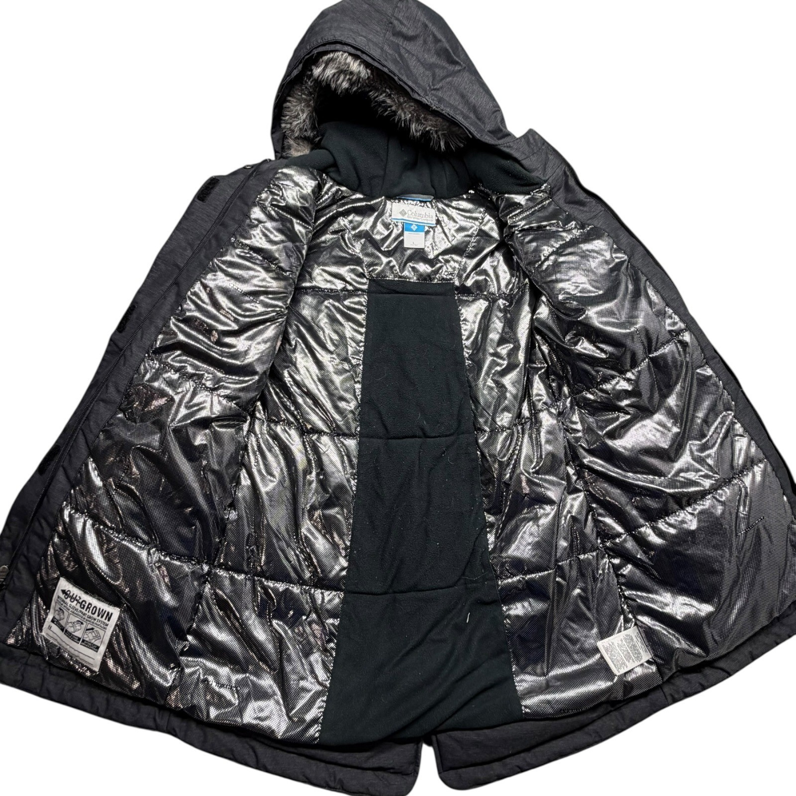 как выглядит Columbia Girls Grey Omni-Heat Insulated Winter Parka Outgrown Size L 14/16 фото