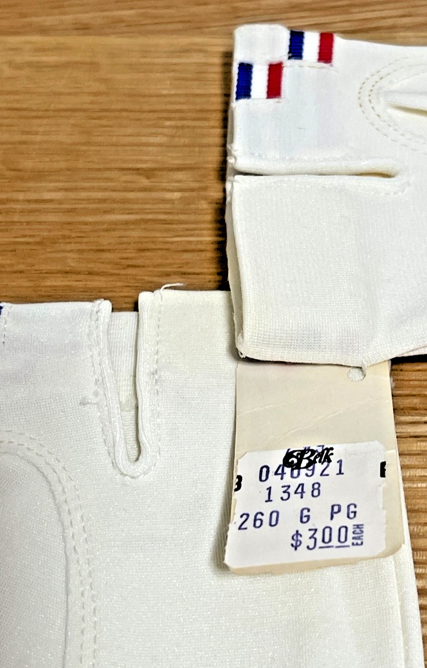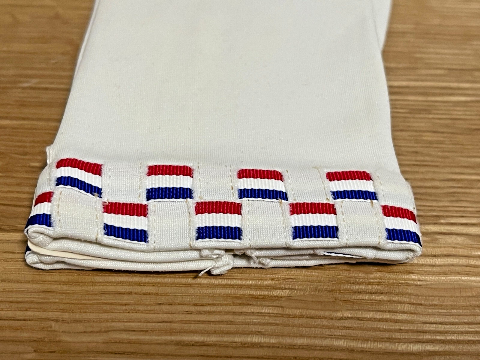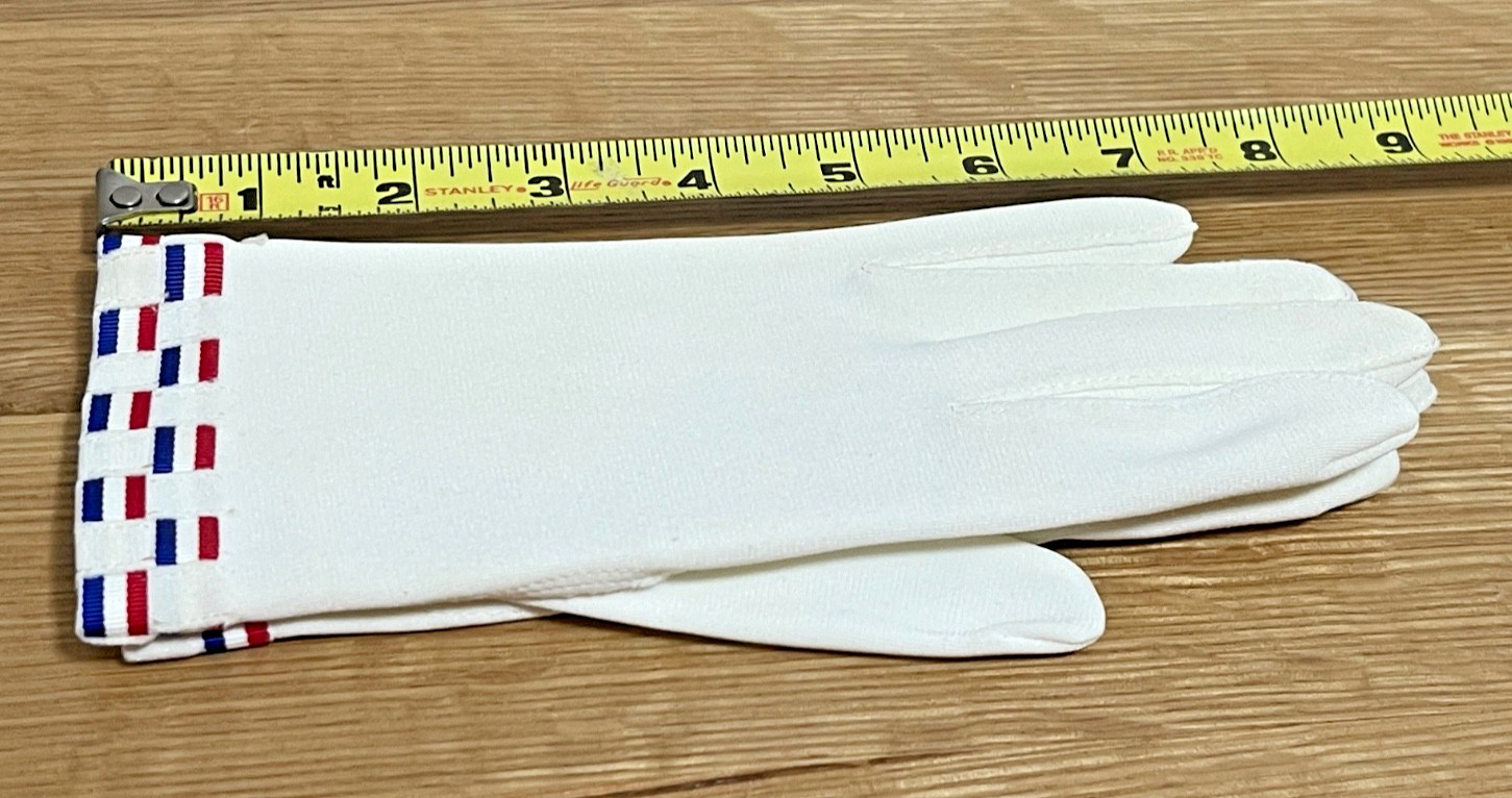 как выглядит NWT 1960s Ladies White Nylon Gloves, Red/White/Blue Trim, FOWNES, Sz B Med фото