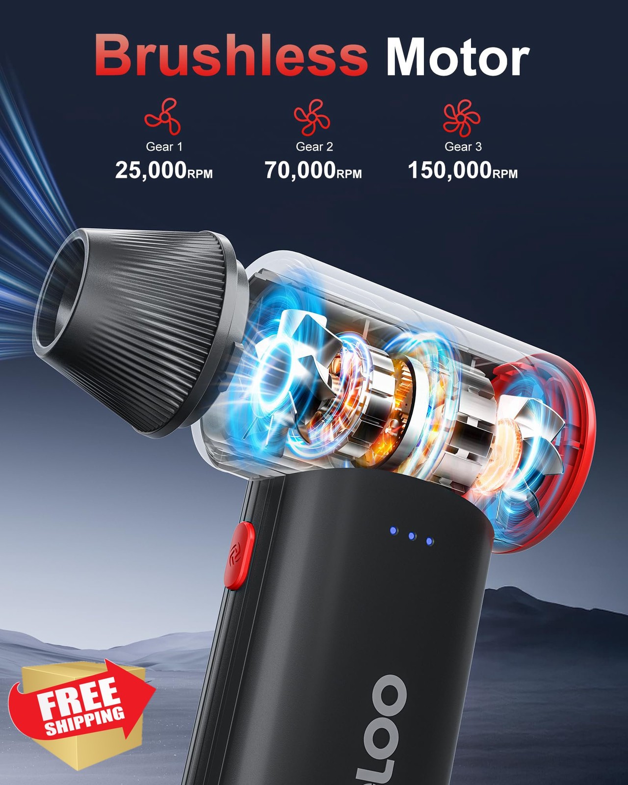 GOOLOO F3 Electric Air Duster, Rechargeable Mini Blower, Cordless, Fast Charging