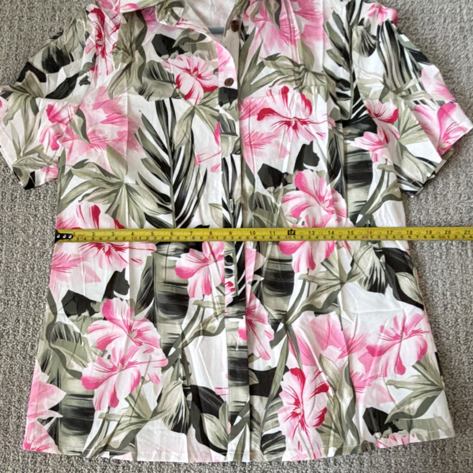 как выглядит Hawaiian Floral Polyester Button-Up Shirt Short Sleeve White Pink Green Size S фото