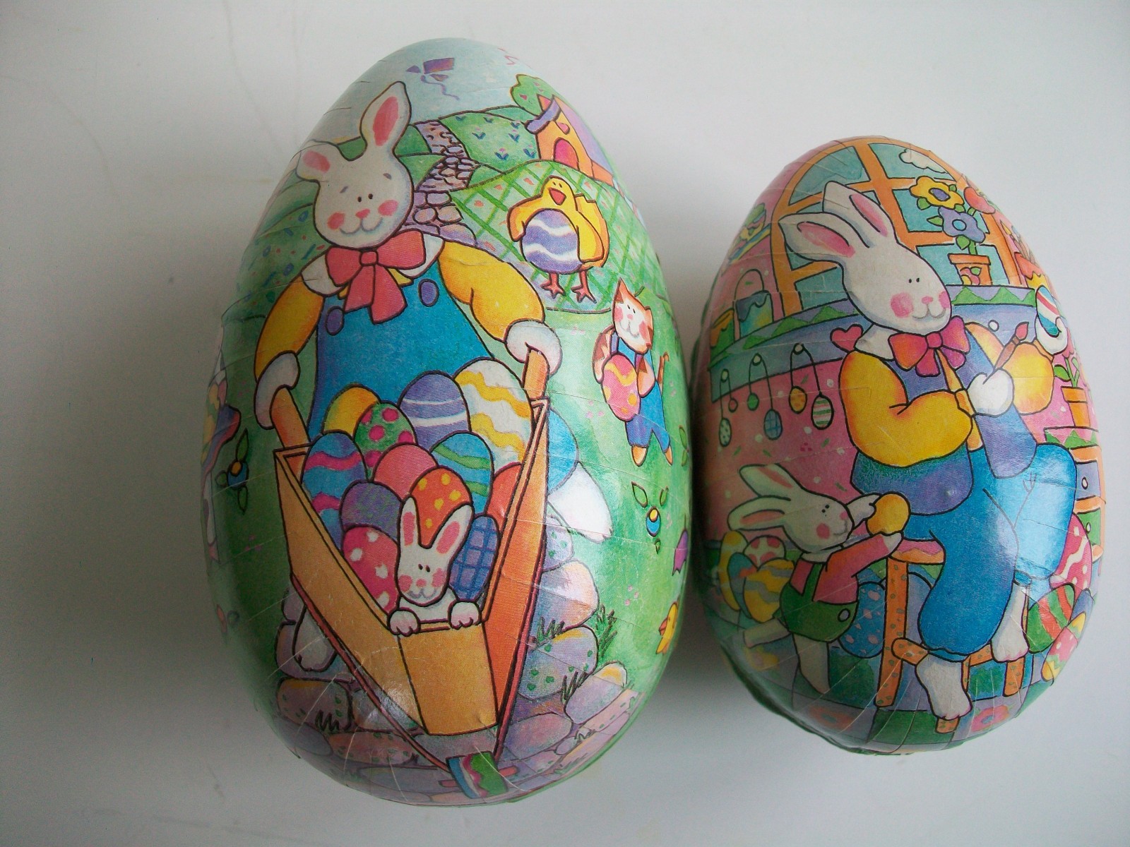 2 paper mache Easter eggs, candy container Western Germany, bunny