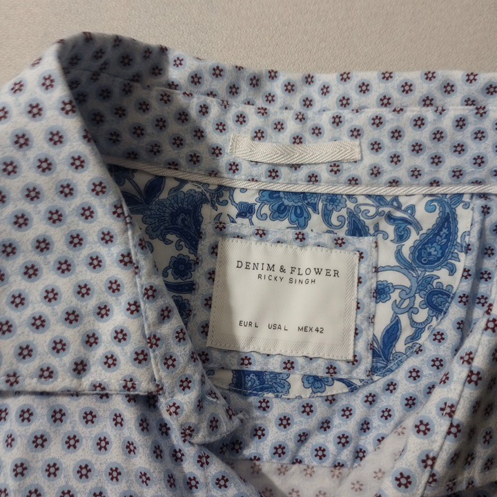 как выглядит Denim Flower Mens Large Shirt NEW WITH TAGS Light Blue Ricky Singh Button Up фото