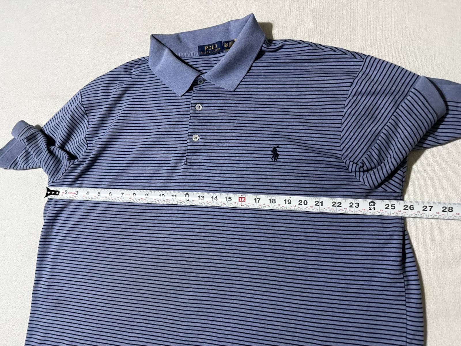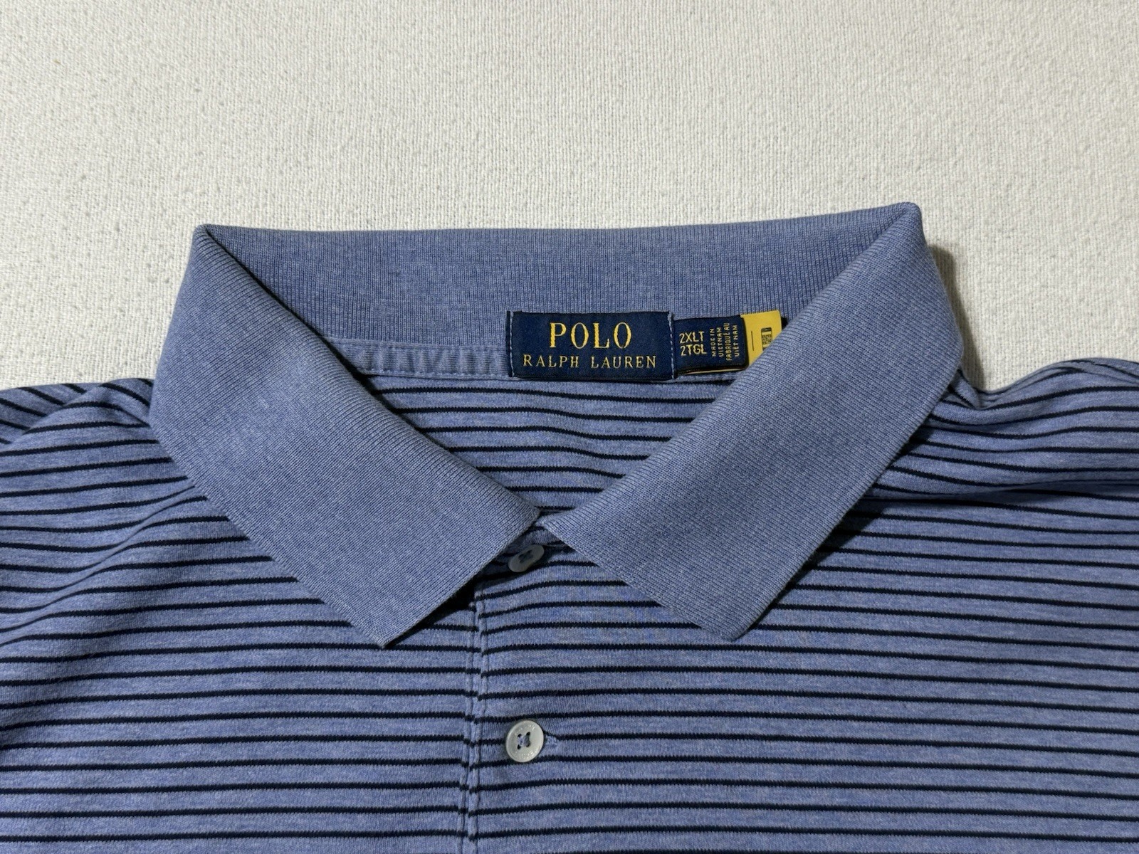 как выглядит Polo Ralph Lauren Mens 2XLT Short Sleeve Shirt Polo Blue Striped Stained фото