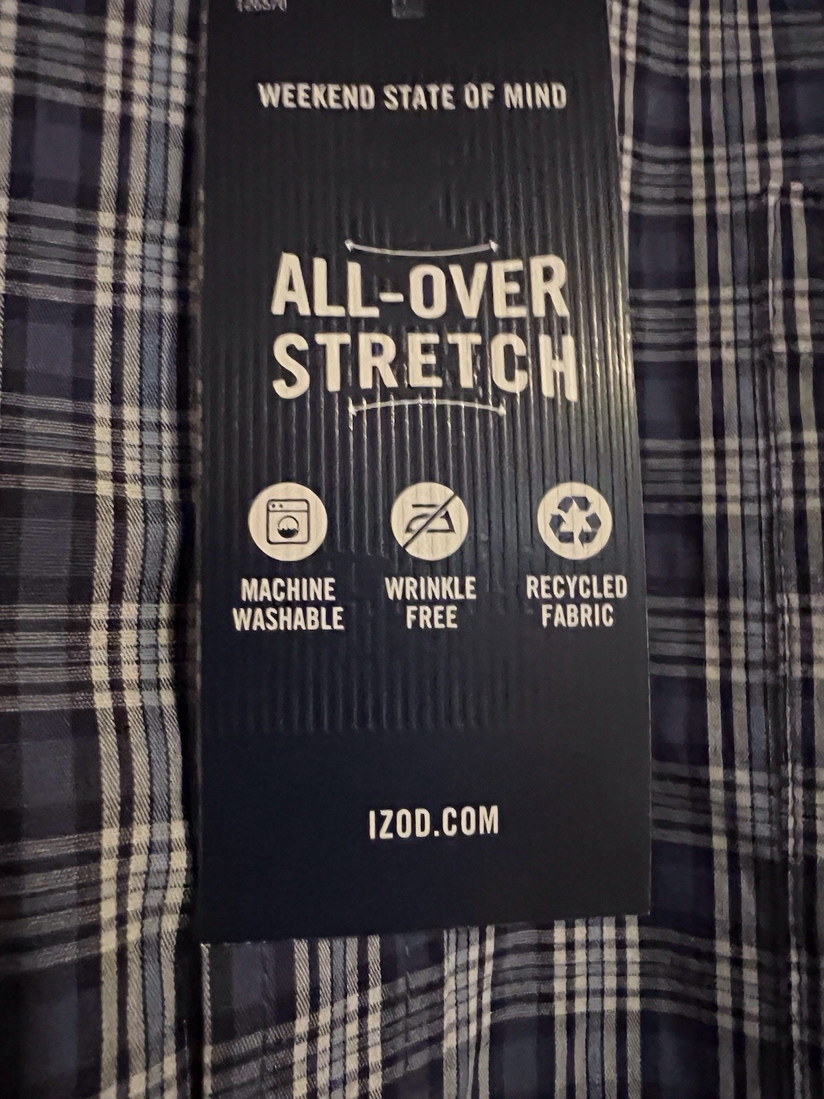Izod Blue Plaid Men's Wrinkle Free, Stretch Long Sleeve Shirt Size L, NWT