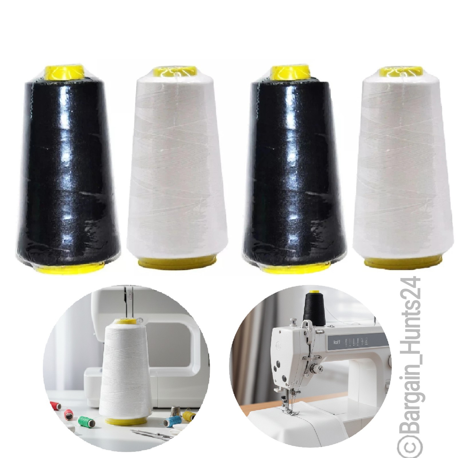 2 WHITE 2 BLACK 2500 Yards Each Spool Sewing Thread 100 Polyester Pk of 4