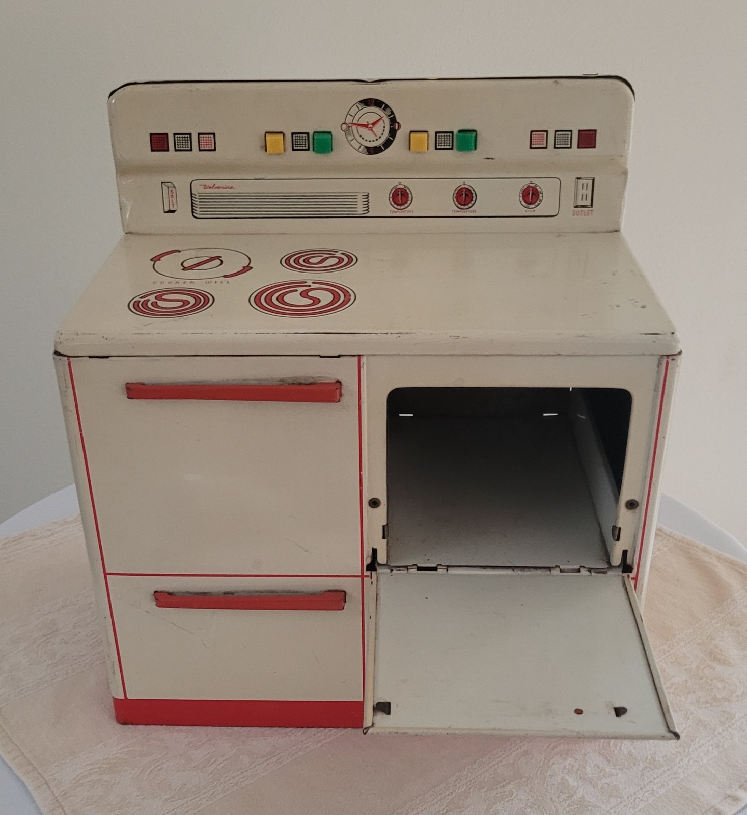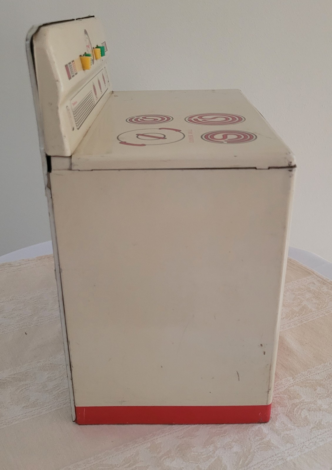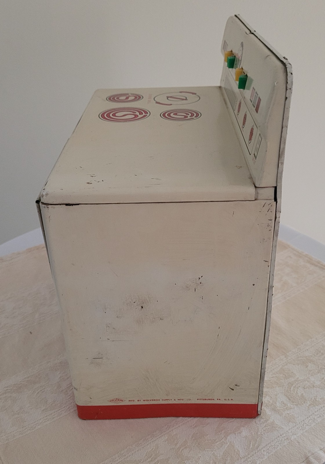 WOLVERINE Metal Kitchen Stove/Oven Tin White w/Red-Litho toy-Vintage 1950s