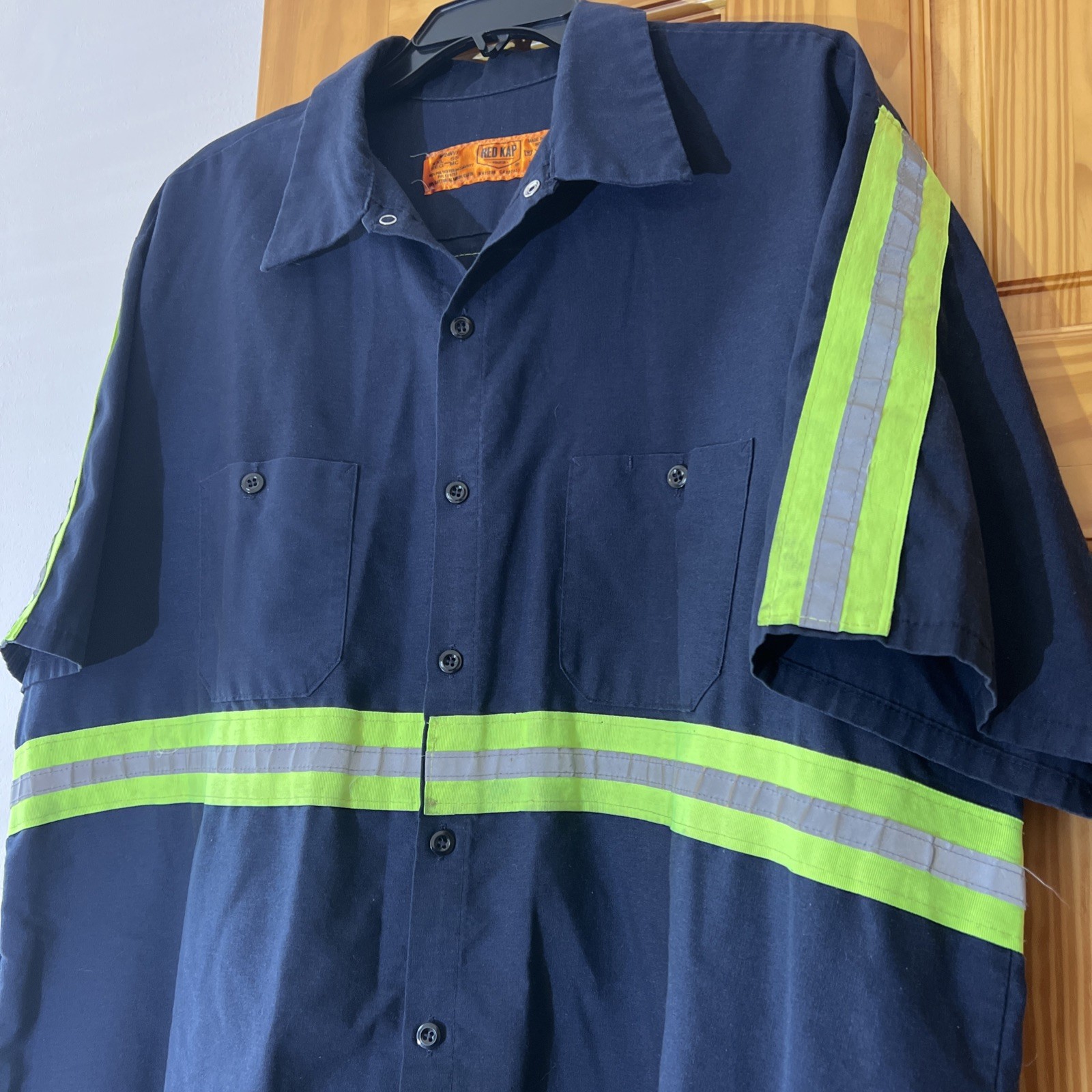 Red Kap Hi Vis Reflective Work Shirt Short Sleeve Navy-Blue/Green Mens XXL