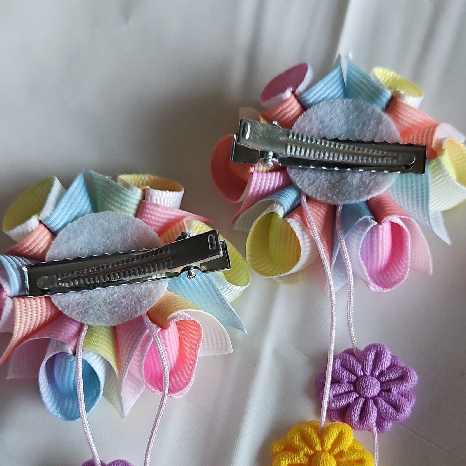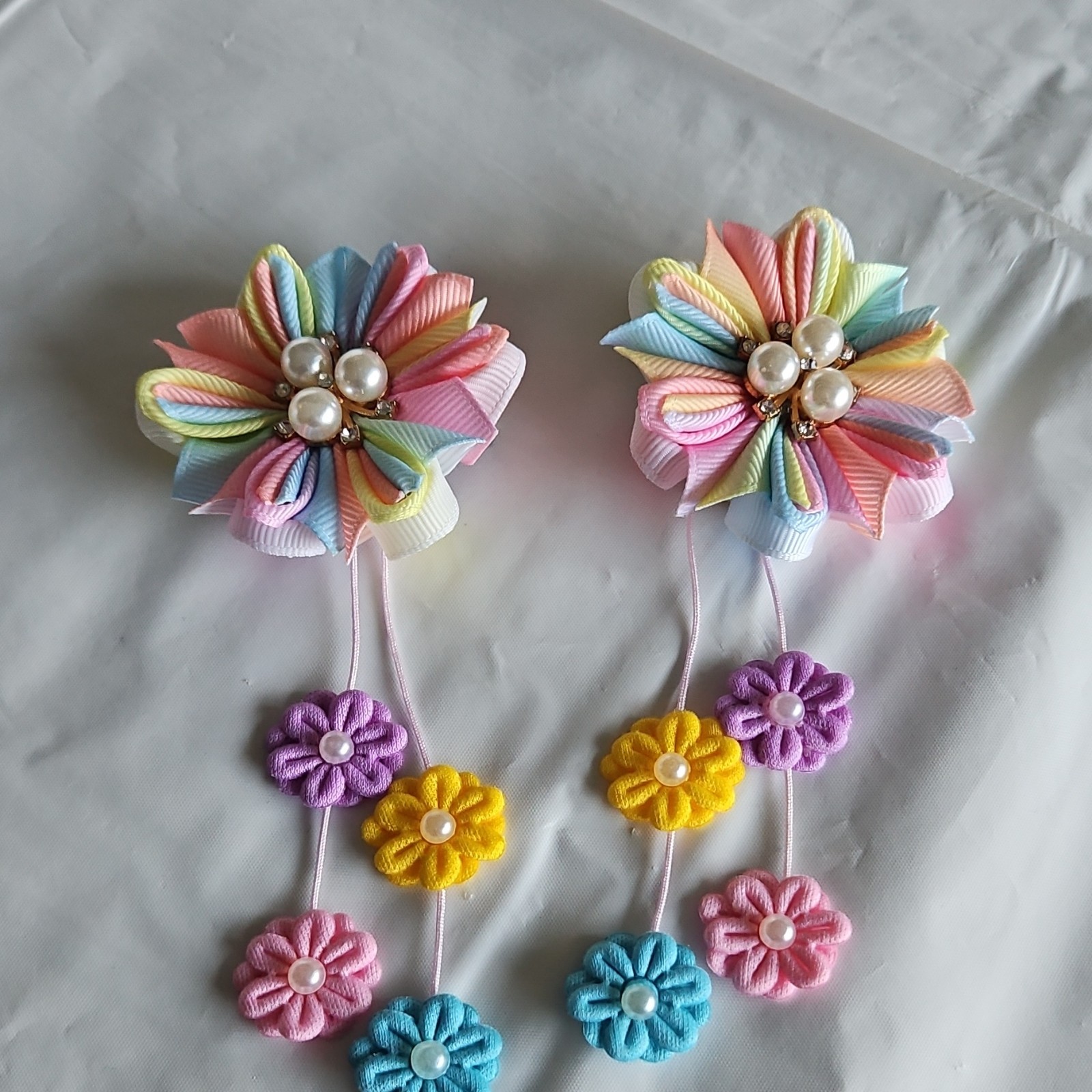 как выглядит OAOLEER 6PCS Multicolor Flower Bow Beaded Hair Clips for Girls, Floral Theme фото