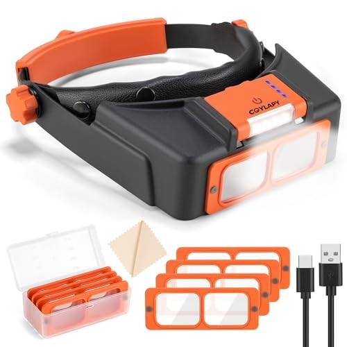 Rechargeable Headband Magnifier with Light, 1.5X-3.5X, 4 Lenses for Crafts Rea