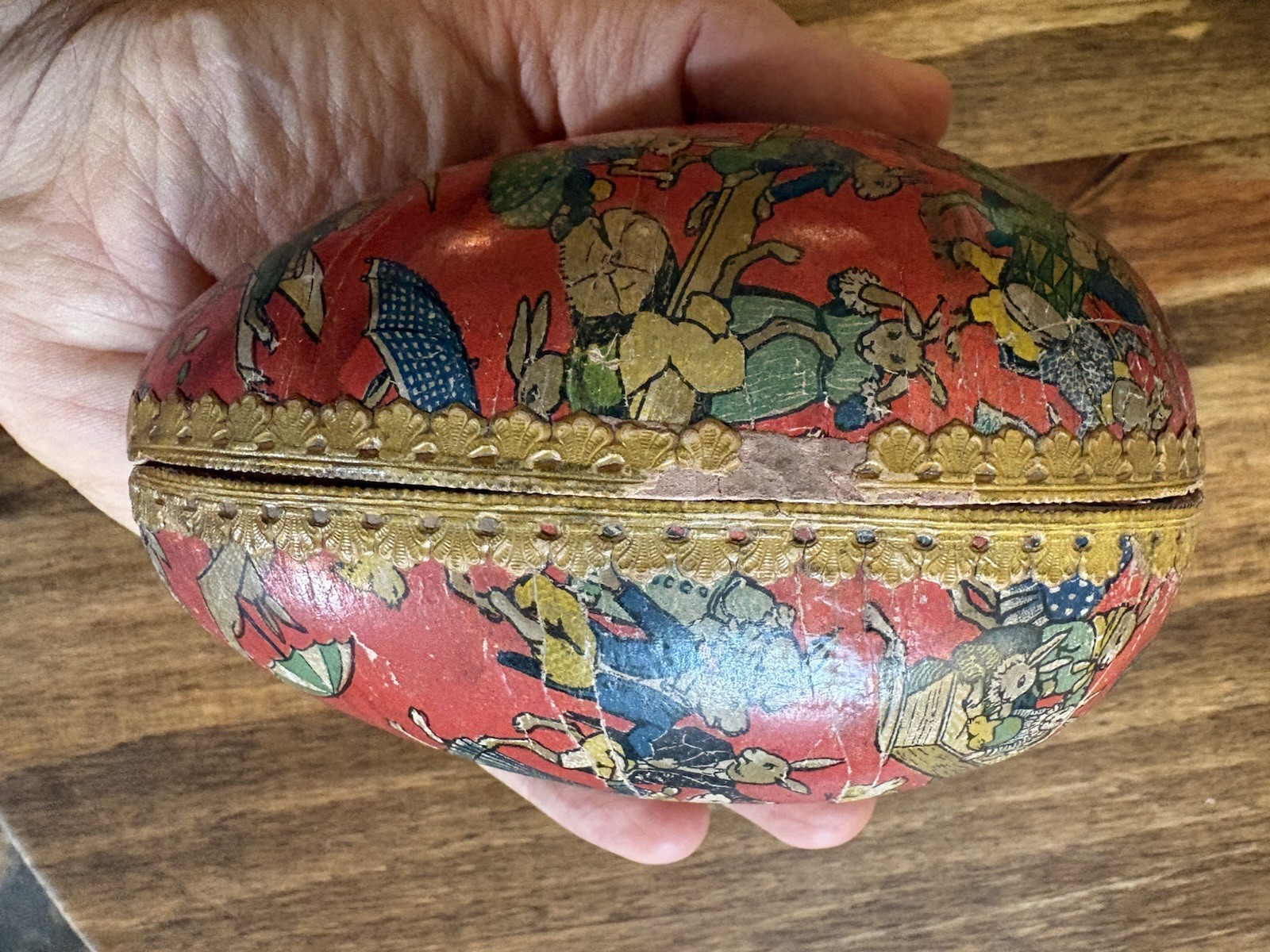 как выглядит Large Antique Paper Mache Easter Egg Candy Container фото