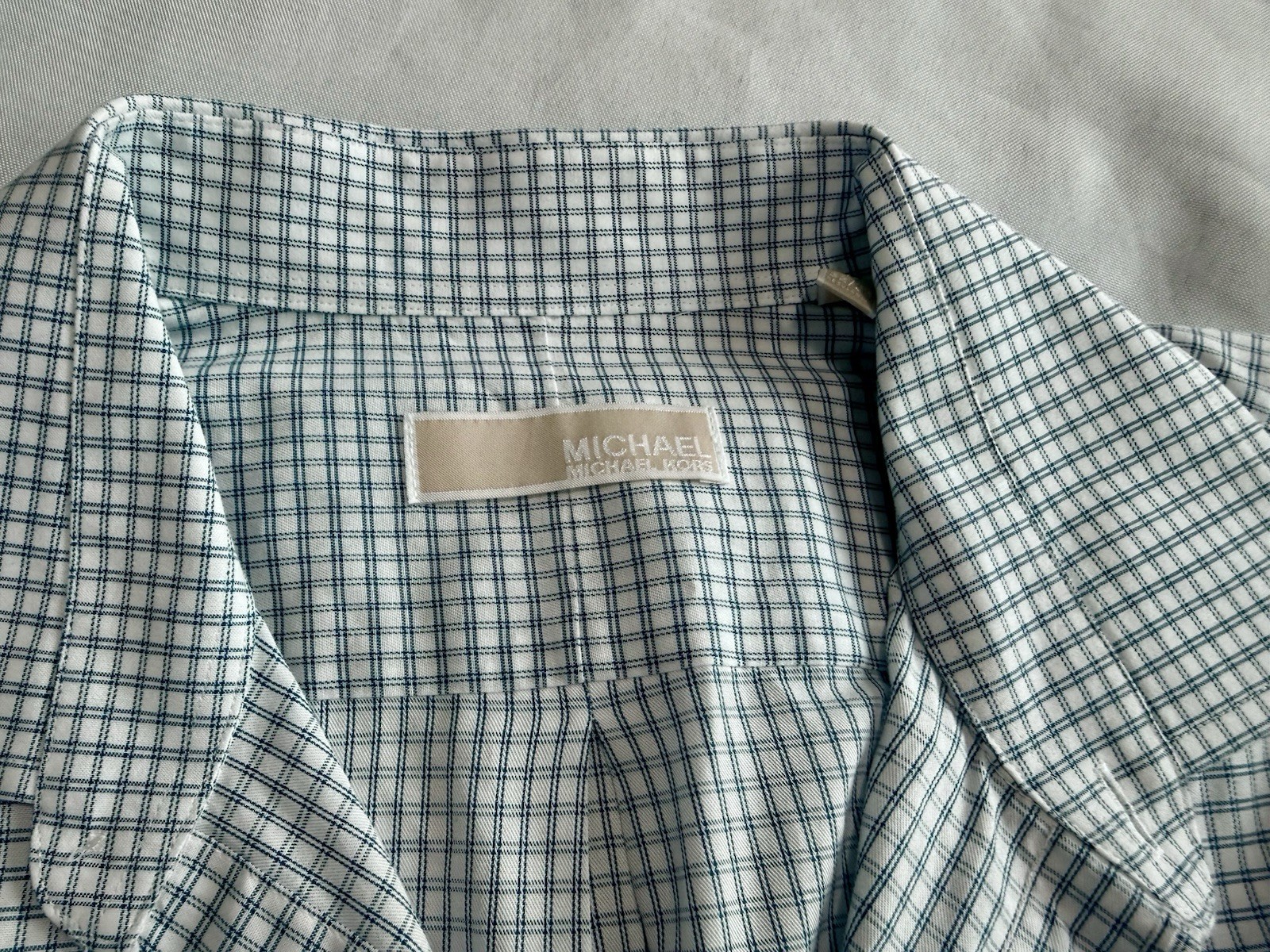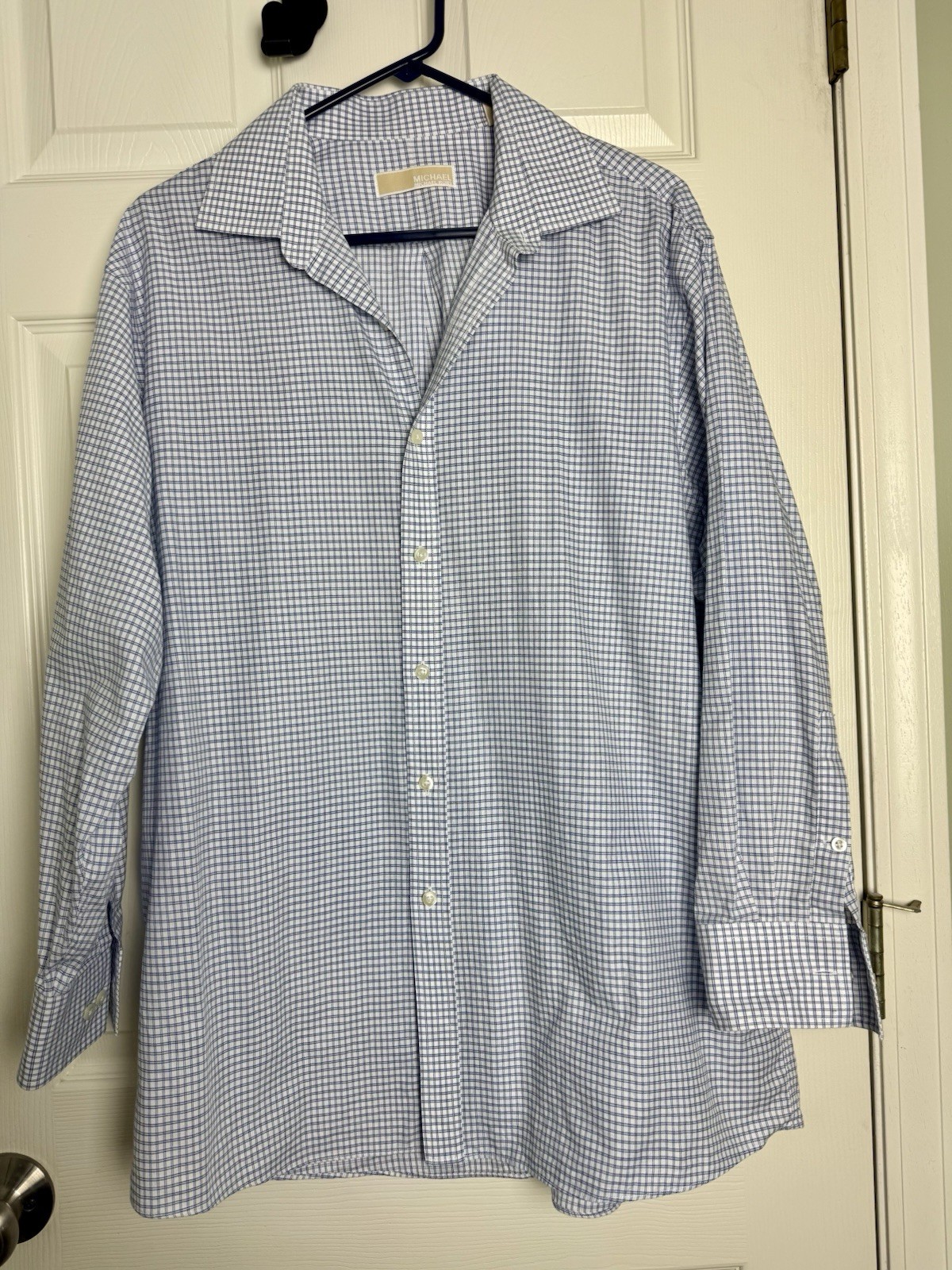 как выглядит Michael Kors Regular Fit Blue Check 100 Cotton Men Dress Shirt 17 32/33 Luxury фото