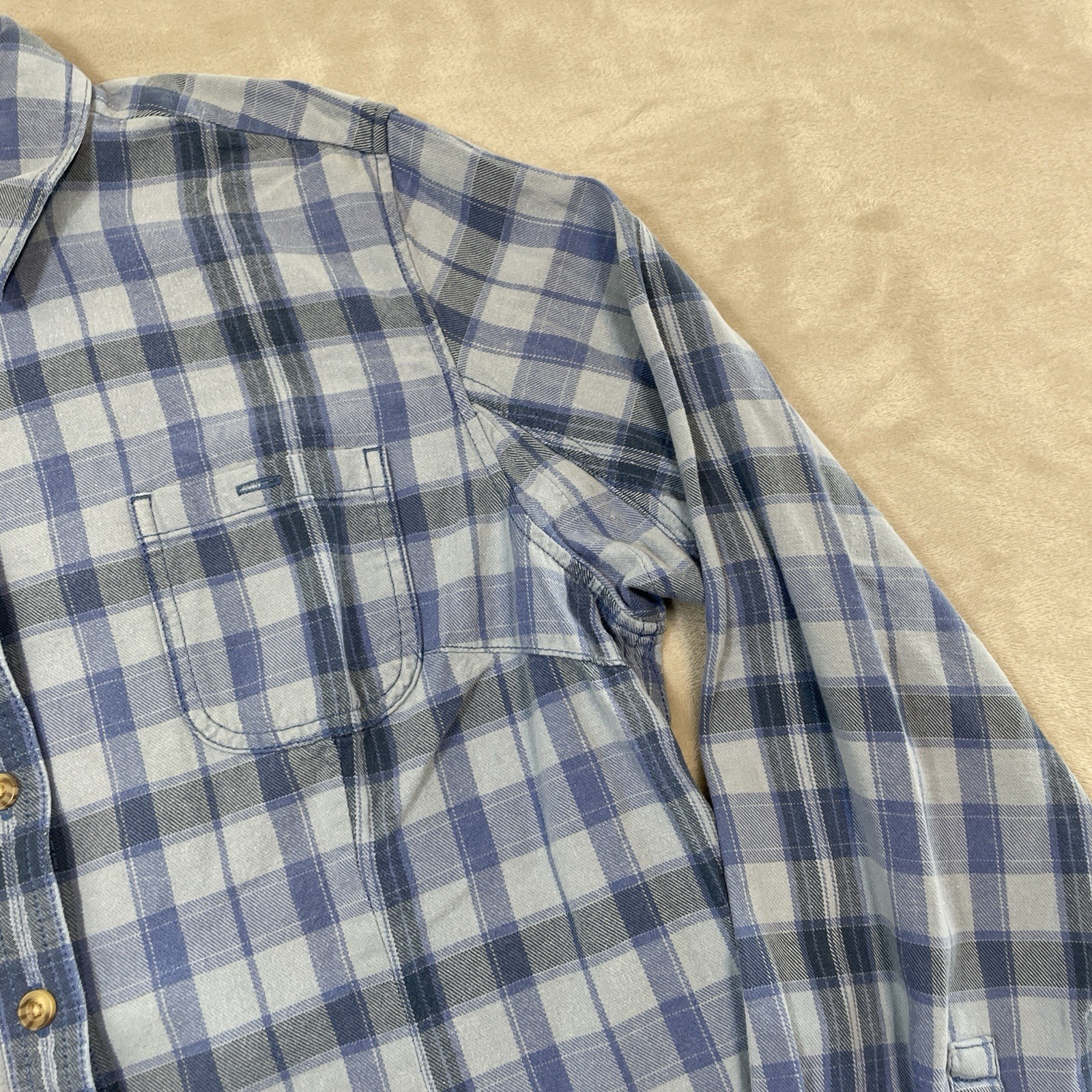 как выглядит Vintage 60s 70s Cotton Flannel Shirt Plaid True VTG Cowboy Western Mens M/L фото