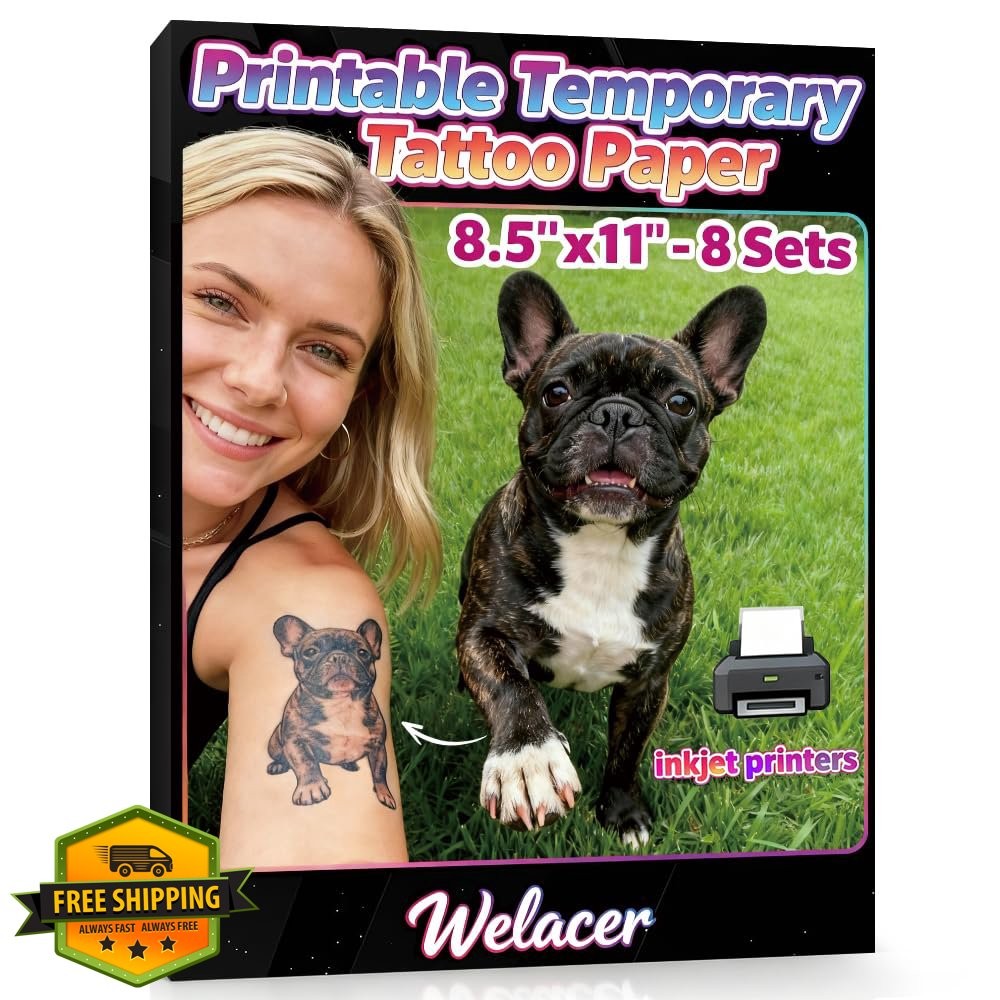 Welacer Printable Tattoo Paper Inkjet 8.5x11 8 Sheets Custom Transfers