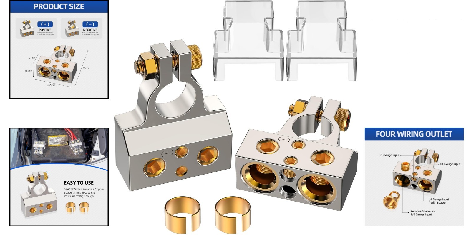 Long Lasting Marine Automotive Battery Terminals - 0/2/4/6/8/10 AWG Compatible