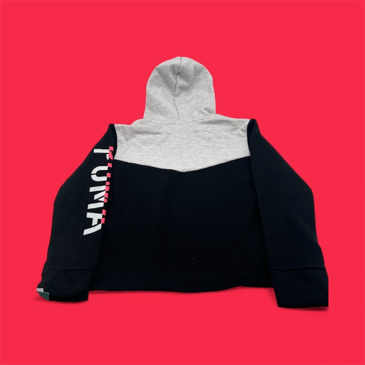 как выглядит PUMA Kids Pullover Hoodie Black Gray Pink Trim Color Block Activewear New Small фото
