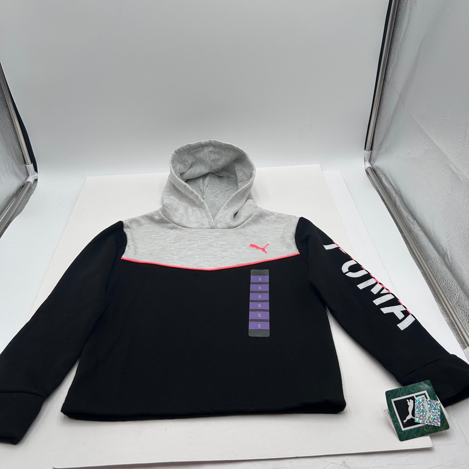 PUMA Kids Pullover Hoodie Black Gray Pink Trim Color Block Activewear New Small