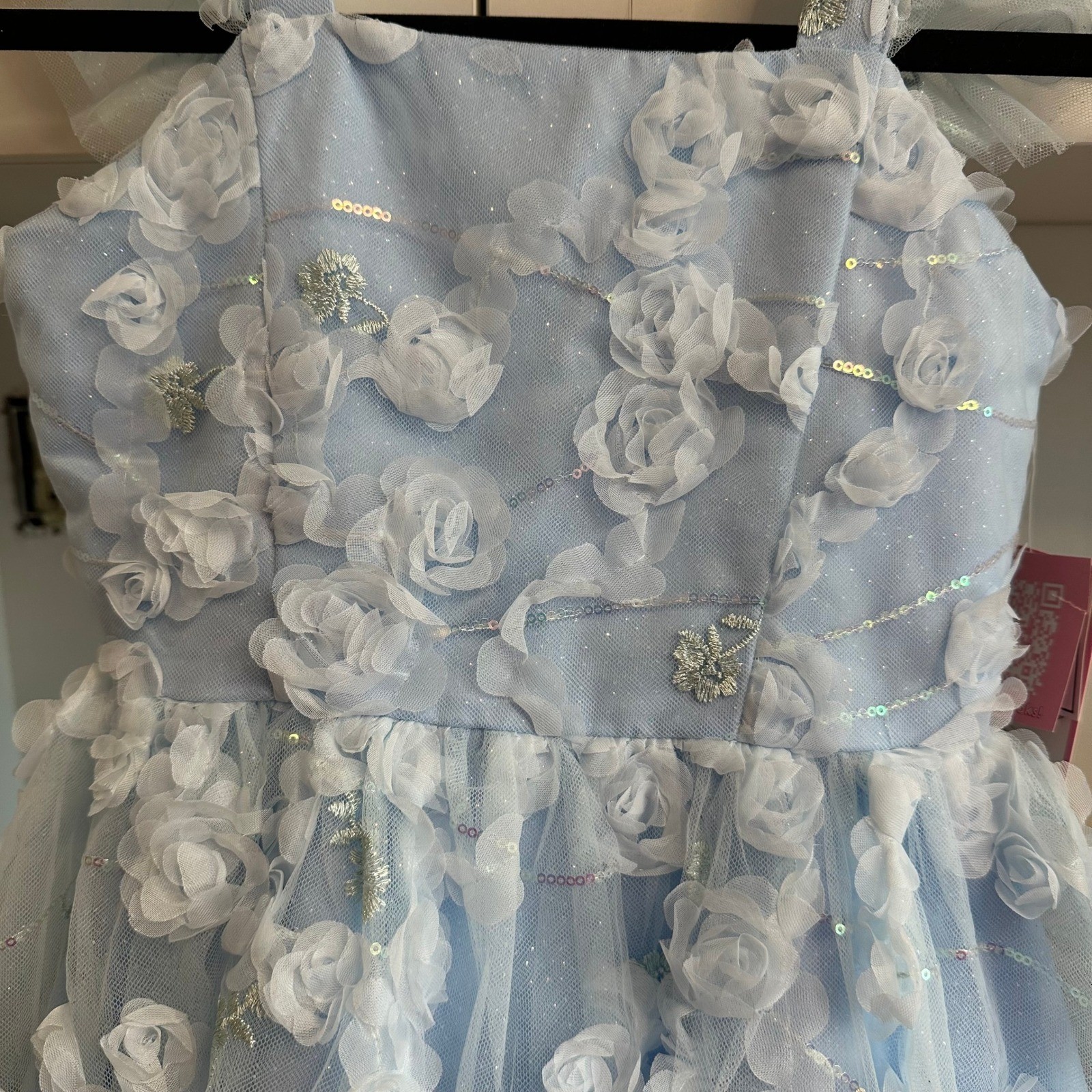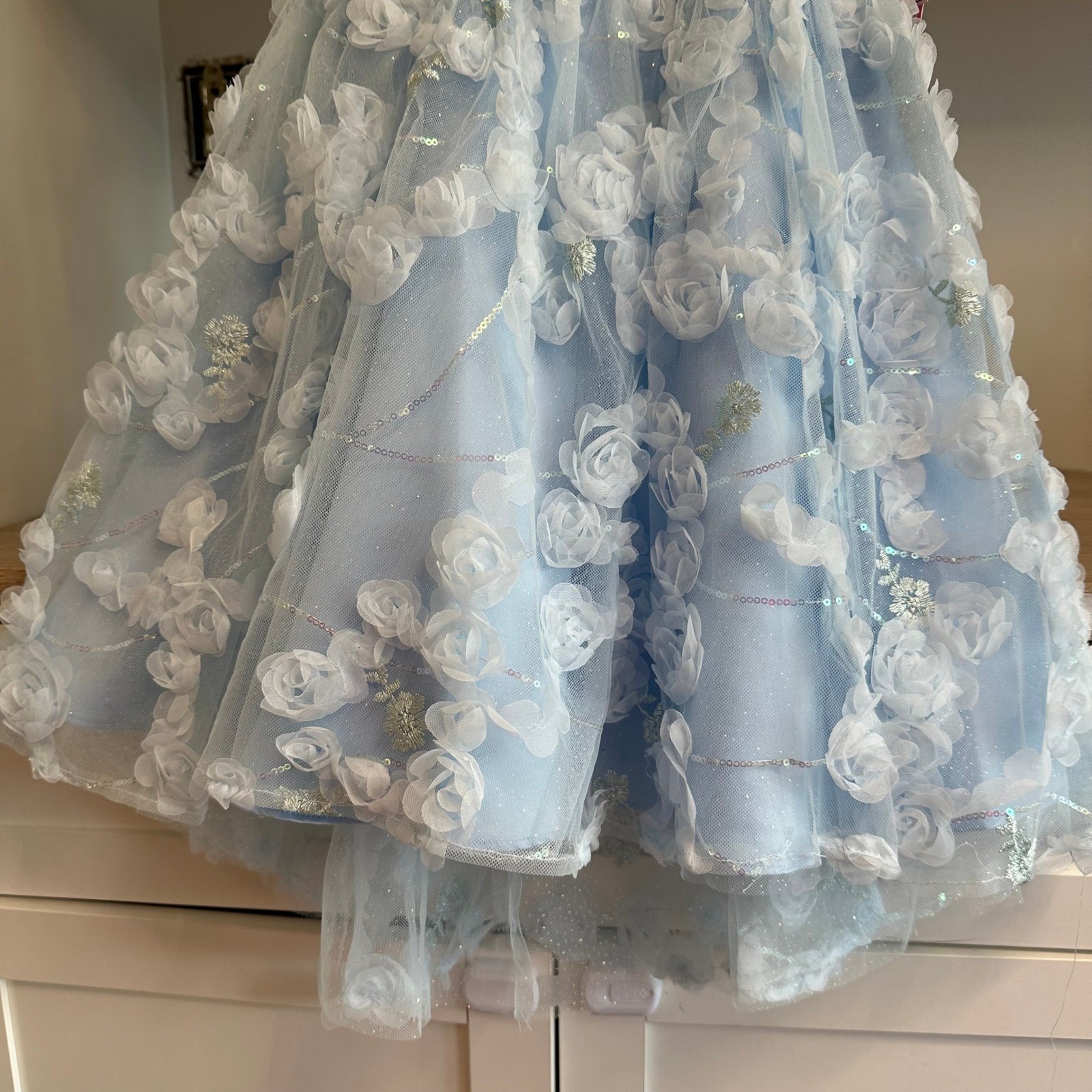 Rare Editions Girls Party Dress Sz 8 Blue 3D Rosette Floral Sequins Formal