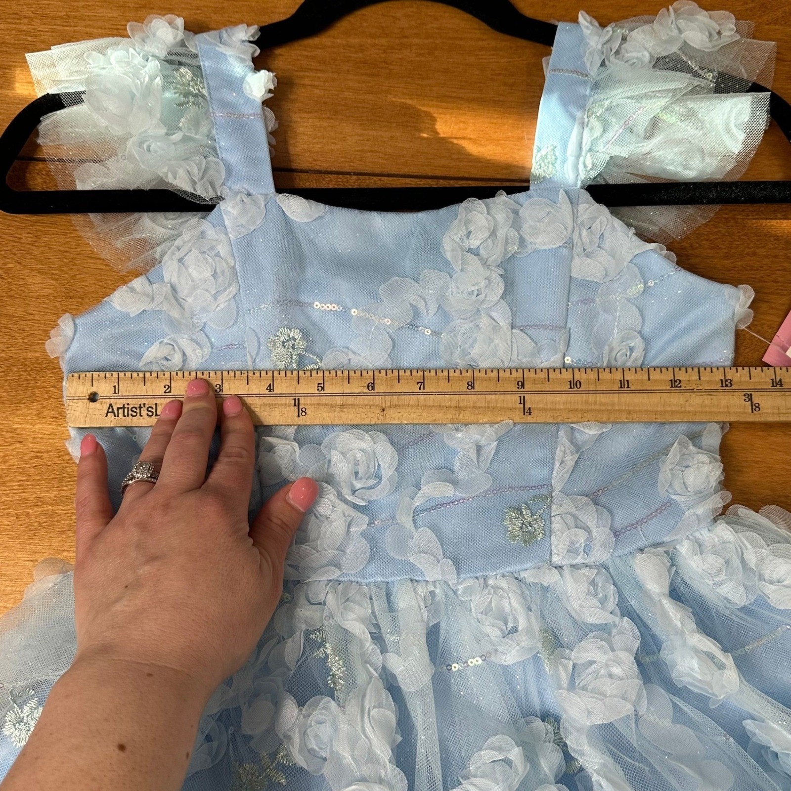 как выглядит Rare Editions Girls Party Dress Sz 8 Blue 3D Rosette Floral Sequins Formal фото