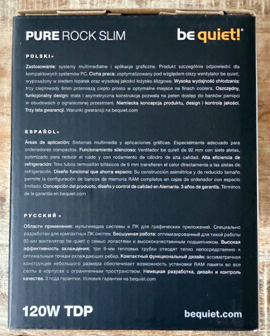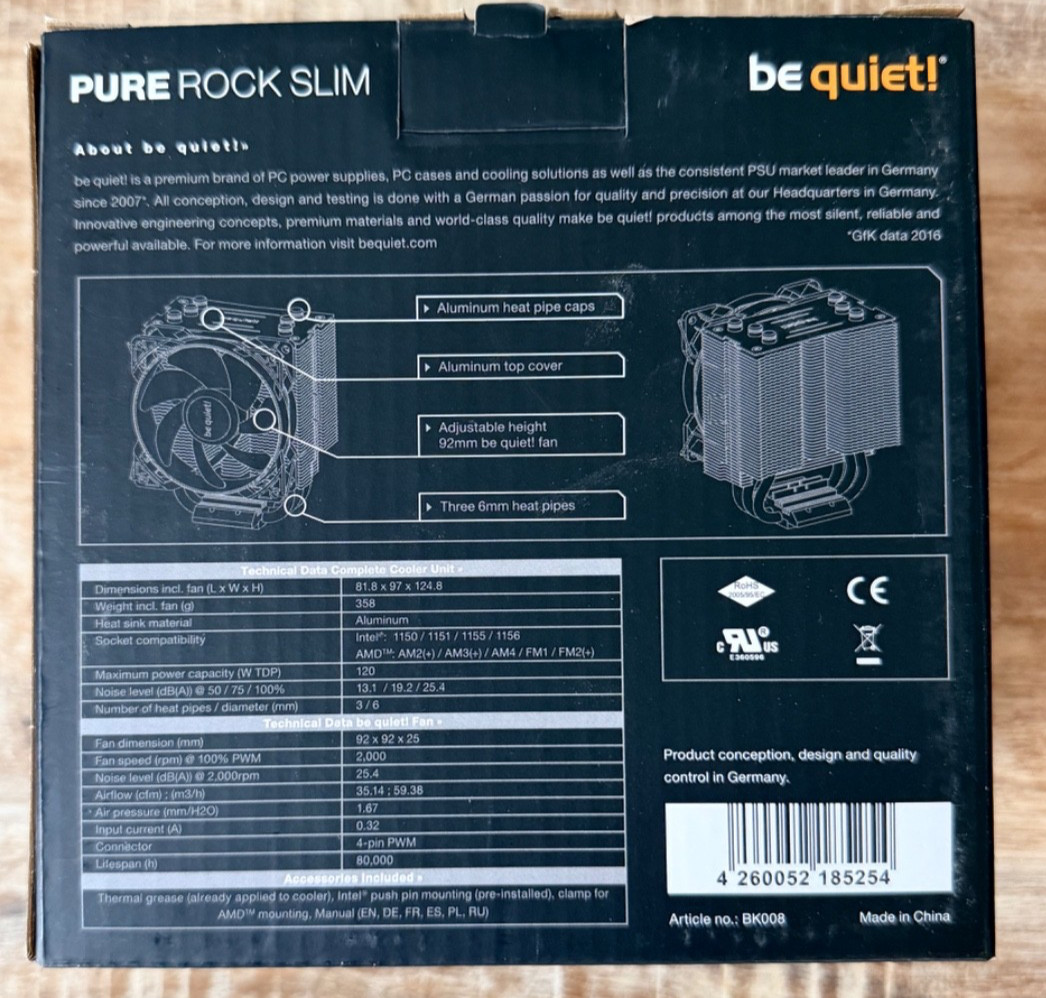 Be Quiet Pure Rock Slim BK008 CPU Cooler 120W TDP 92mm Fan Intel AMD NEW