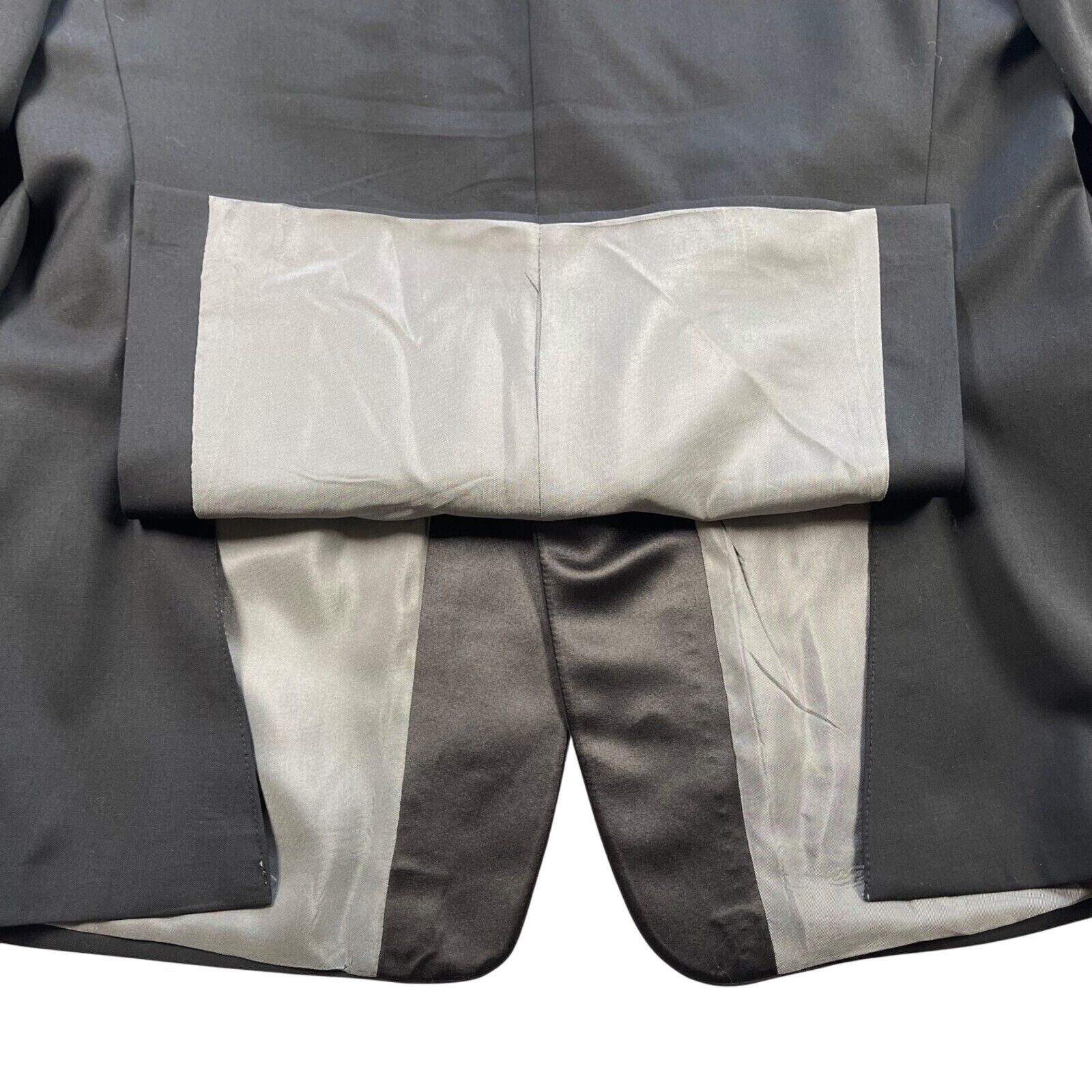 как выглядит Calvin Klein Tuxedo Jacket Mens 44R 100 Wool Black Satin Trim Three Button фото